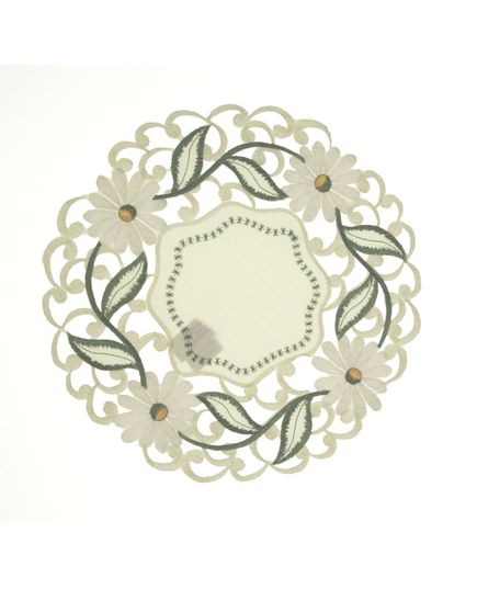 Ця витончена серветка розміром 30х30 см стане гарним акцентом у сервіруванні столу. Молочний відтінок додає ніжності, а оздоблення вишивкою та ажурними краями створює елегантний вигляд. Виготовлена з міцного та практичного поліестеру, серветка легко переться та зберігає свою форму.