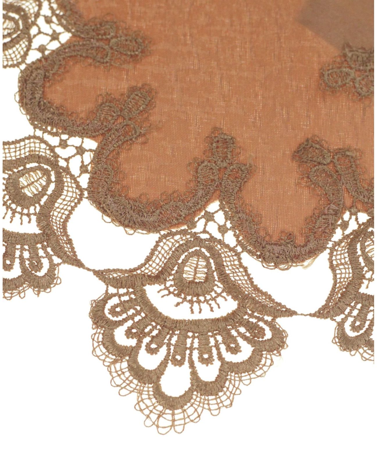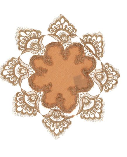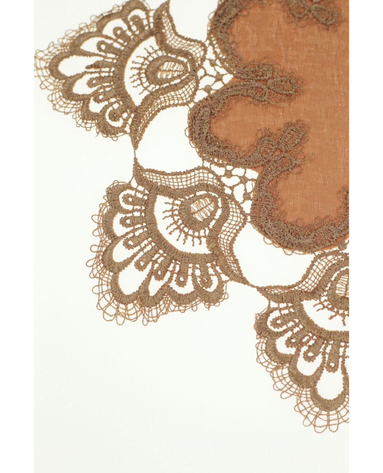 Кругла серветка 30х30 см теракотового кольору з мереживом — стильний акцент для вашого інтер’єру. Глибокий теплий відтінок додає затишку, а витончене мереживо підкреслює елегантність сервірування. Практичний поліестер забезпечує легкість догляду та довговічність.