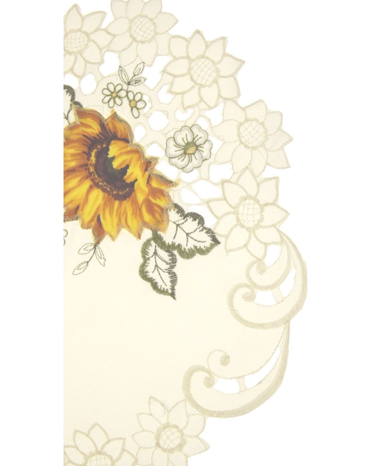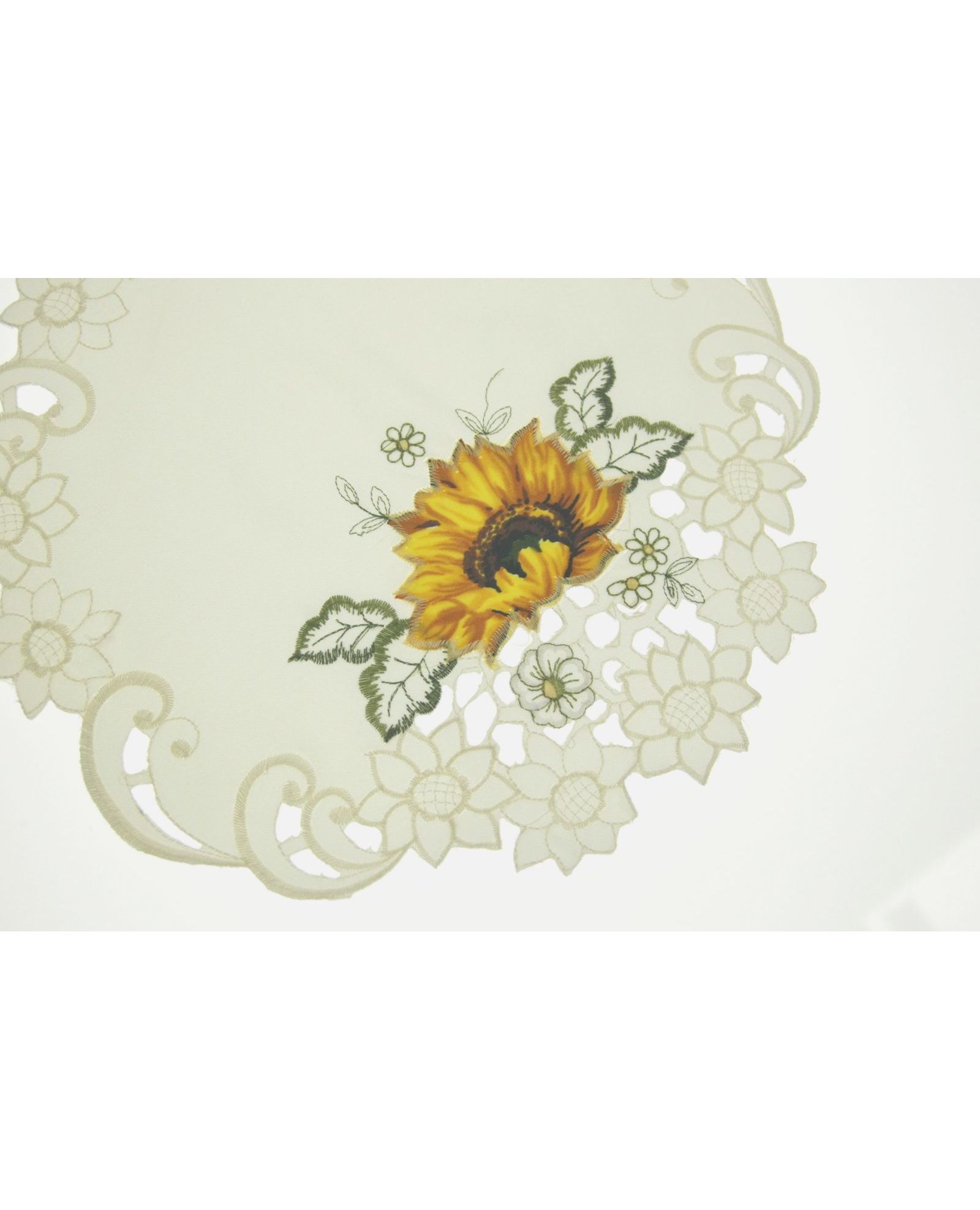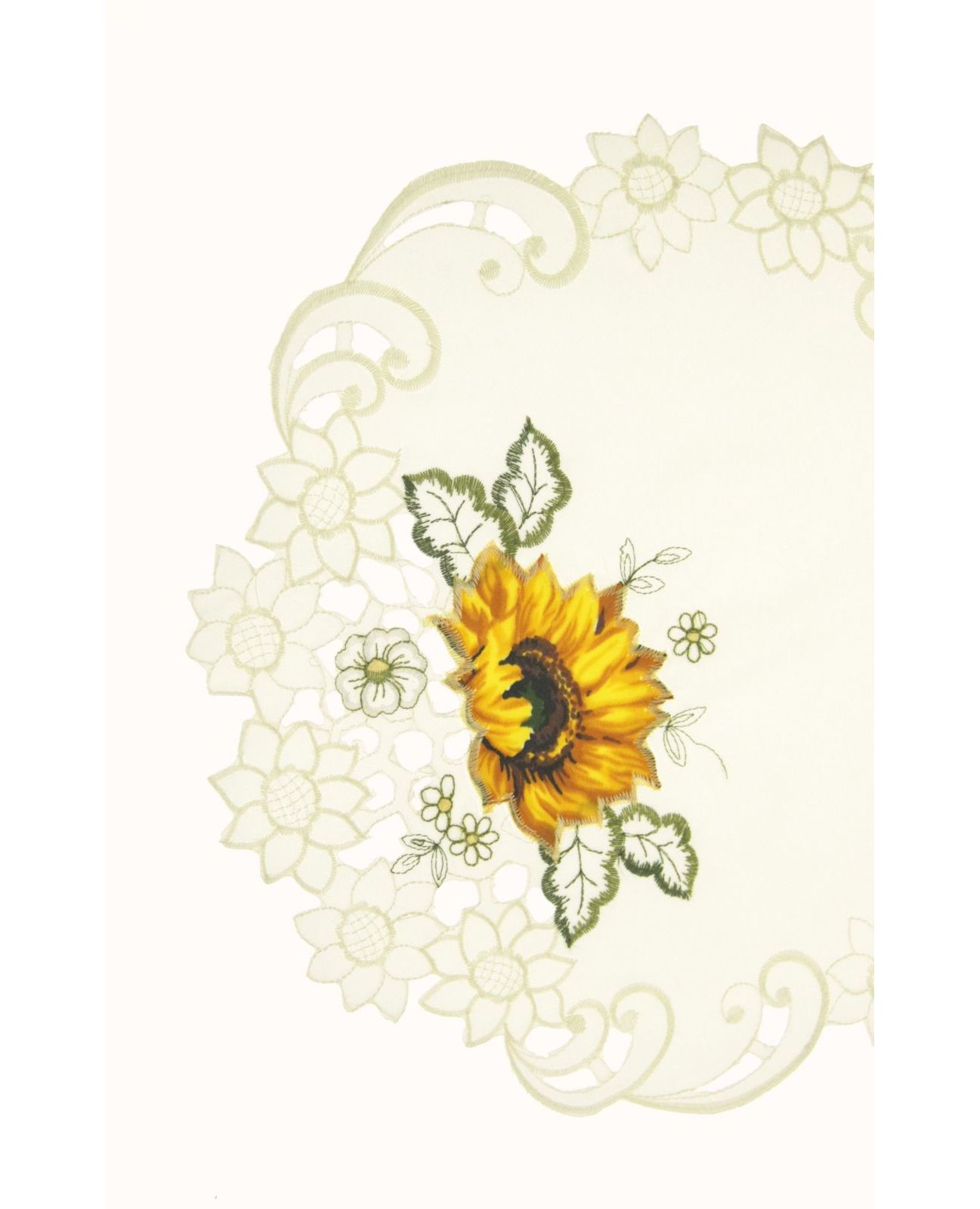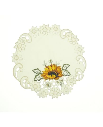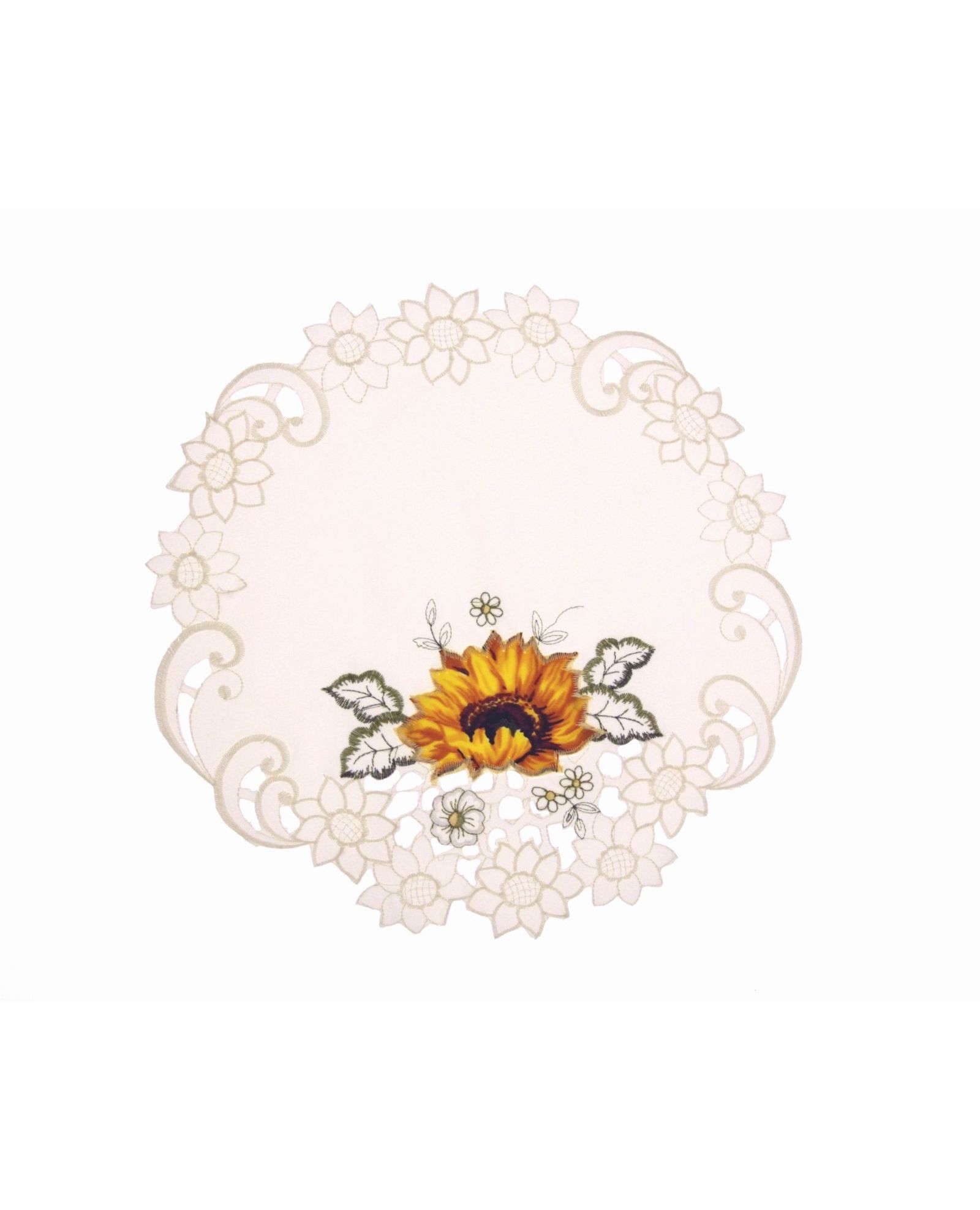 Ніжна кругла серветка молочного кольору з ажурним краєм і витонченою вишивкою стане ідеальним акцентом для сервірування столу. Її витончене оздоблення додає вишуканості, а поліестерова основа забезпечує зносостійкість і простоту в догляді.