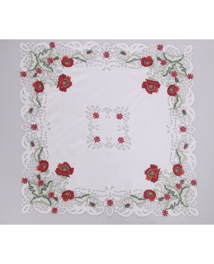 Ця серветка білого кольору з розкішною ажурною вишивкою квітів стане справжньою окрасою вашого столу. Класичний квадратний формат 85х85 см підходить як для щоденного використання, так і для особливих подій. Міцна поліестерова тканина не втрачає форми та легко переться, зберігаючи привабливий вигляд надовго.