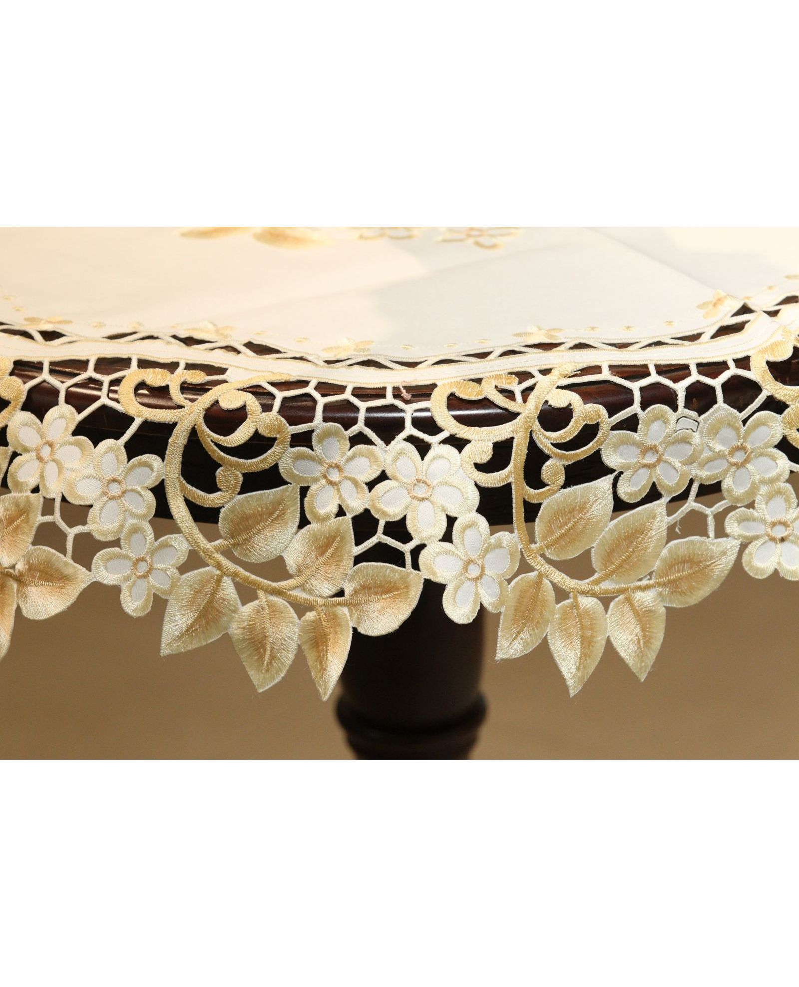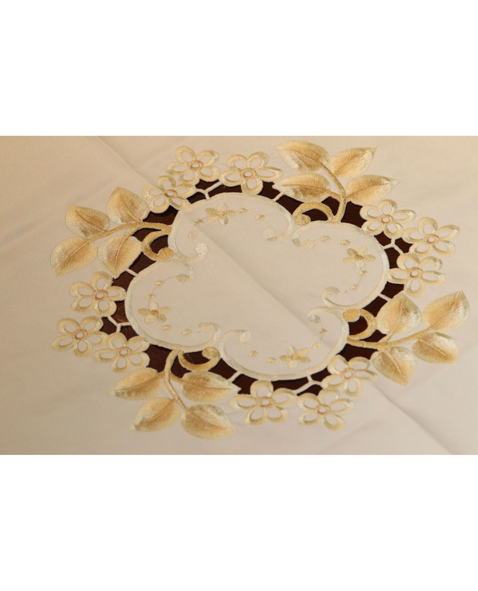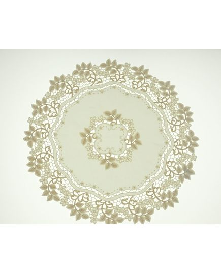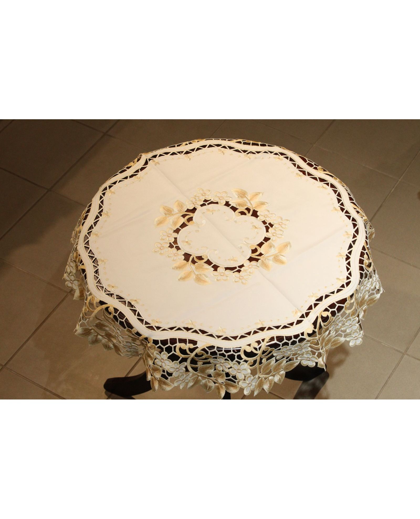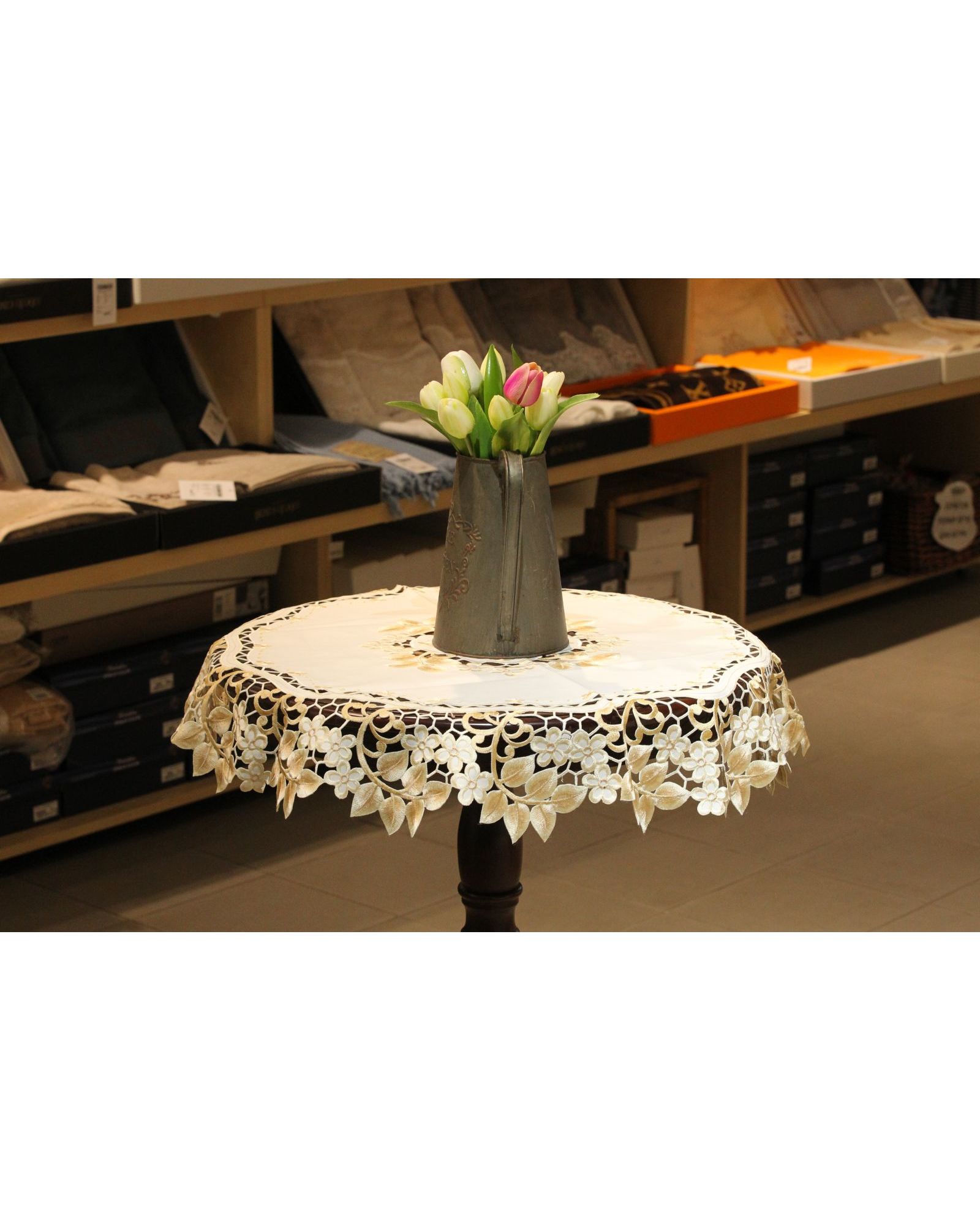 Серветка 85×85 см бежевого кольору з ажурною вишивкою – кругла класика елегантності