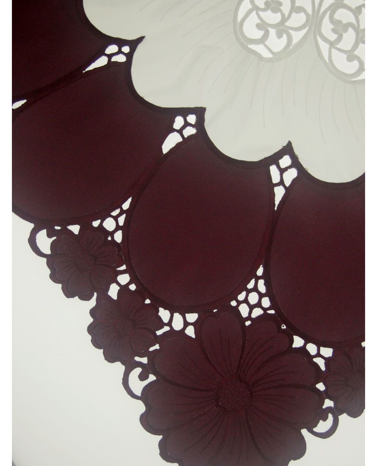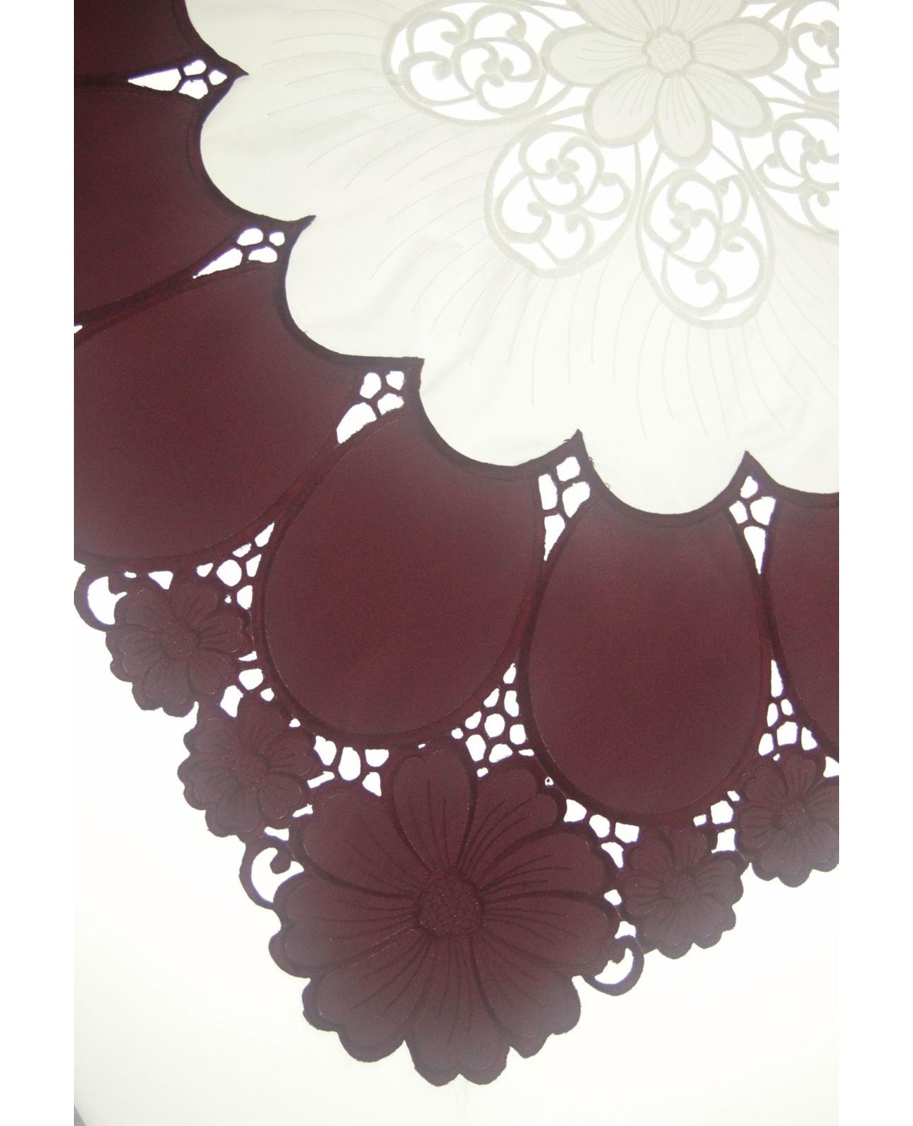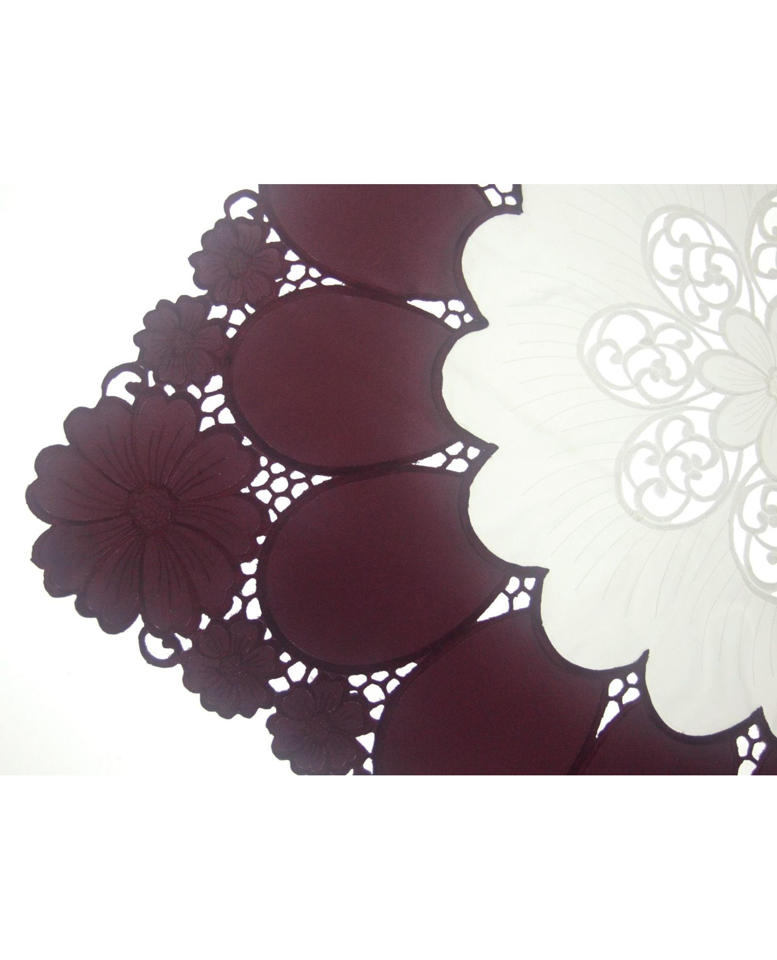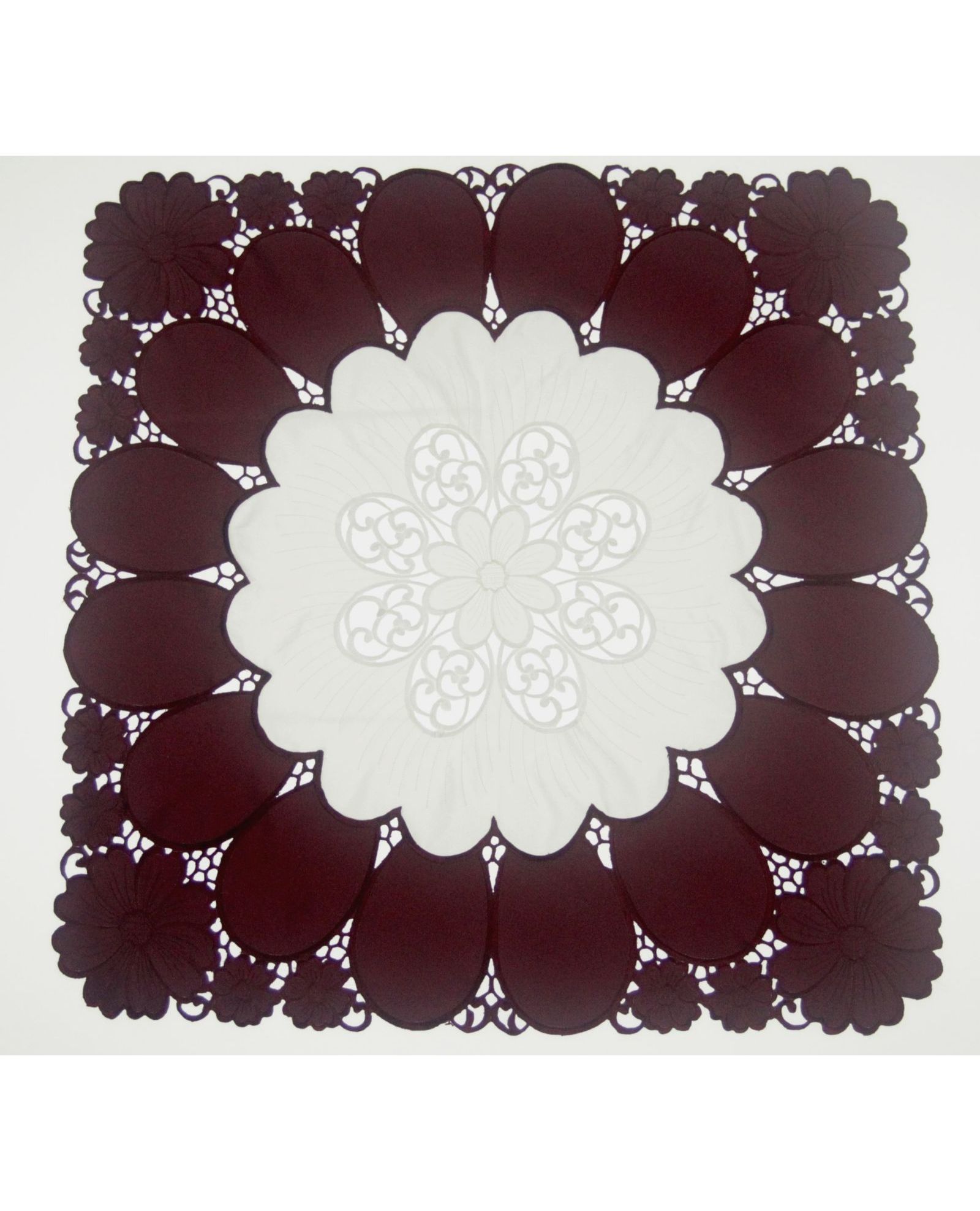 Серветка бордова з вишивкою та ажуром 85х85 см – елегантний акцент для вашого столу