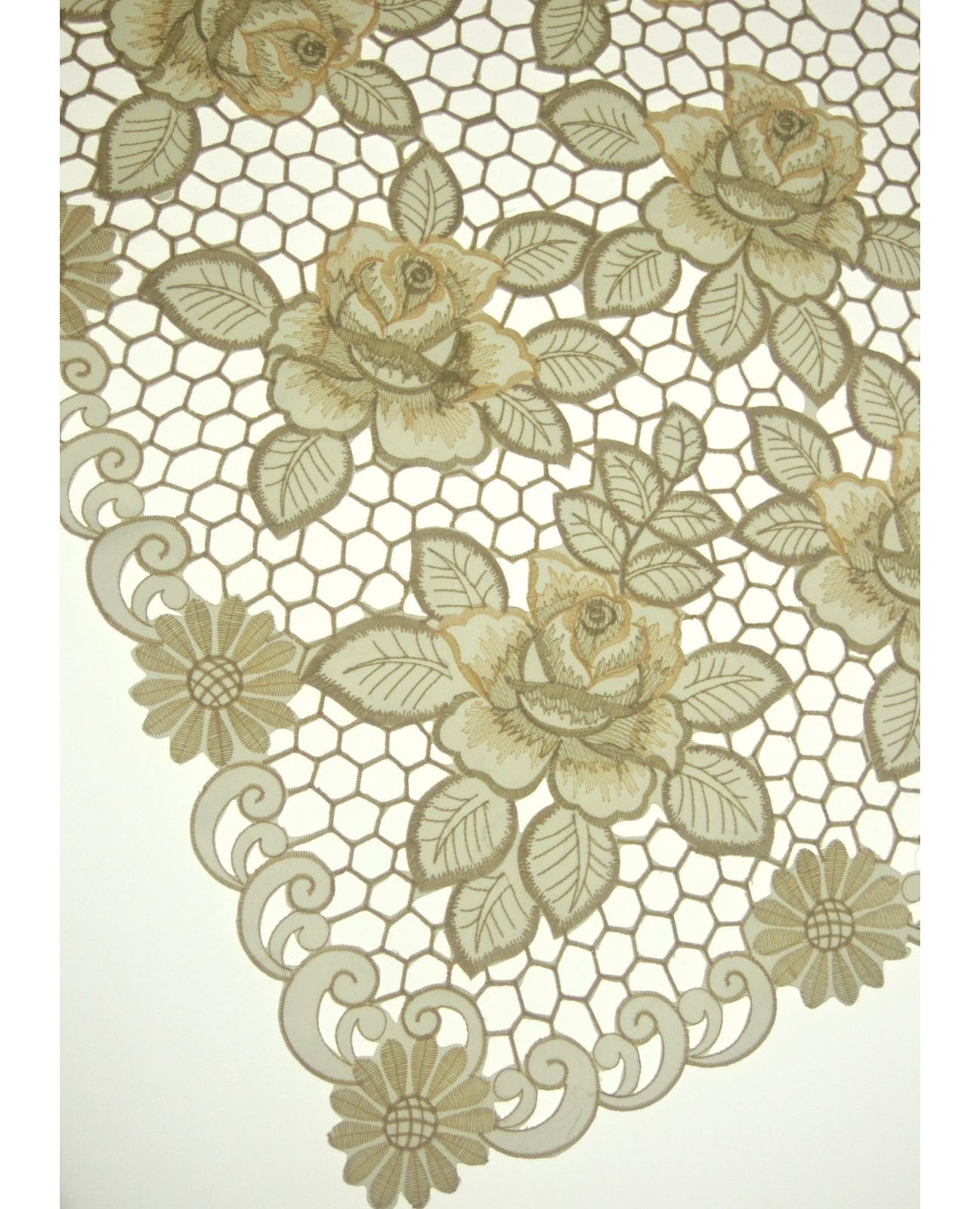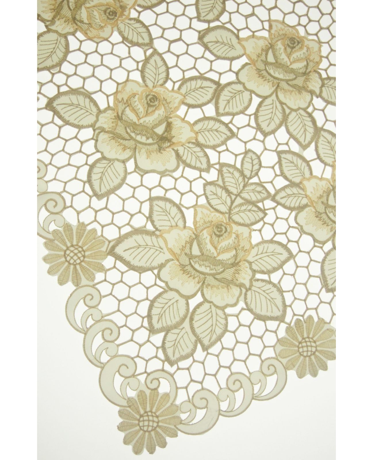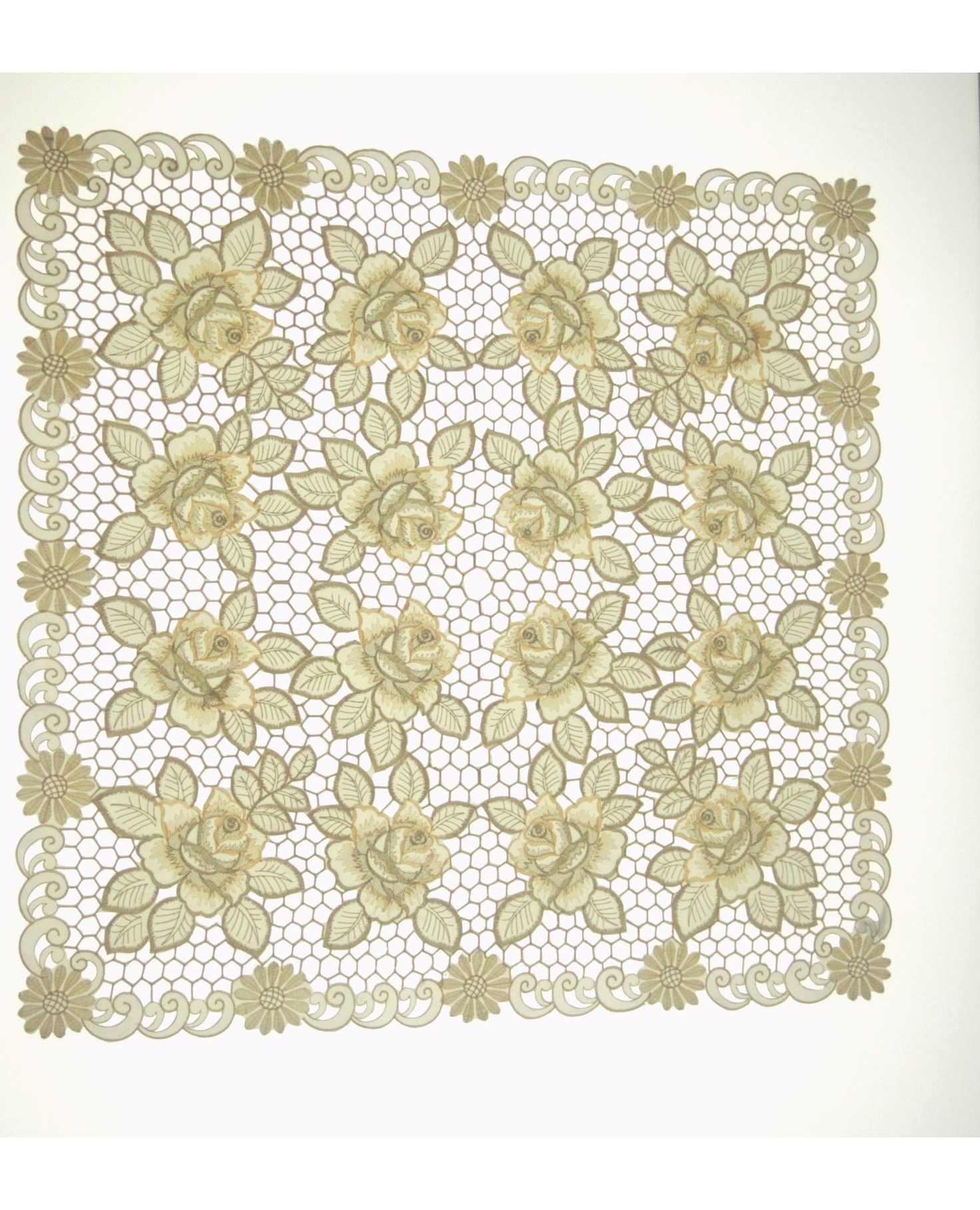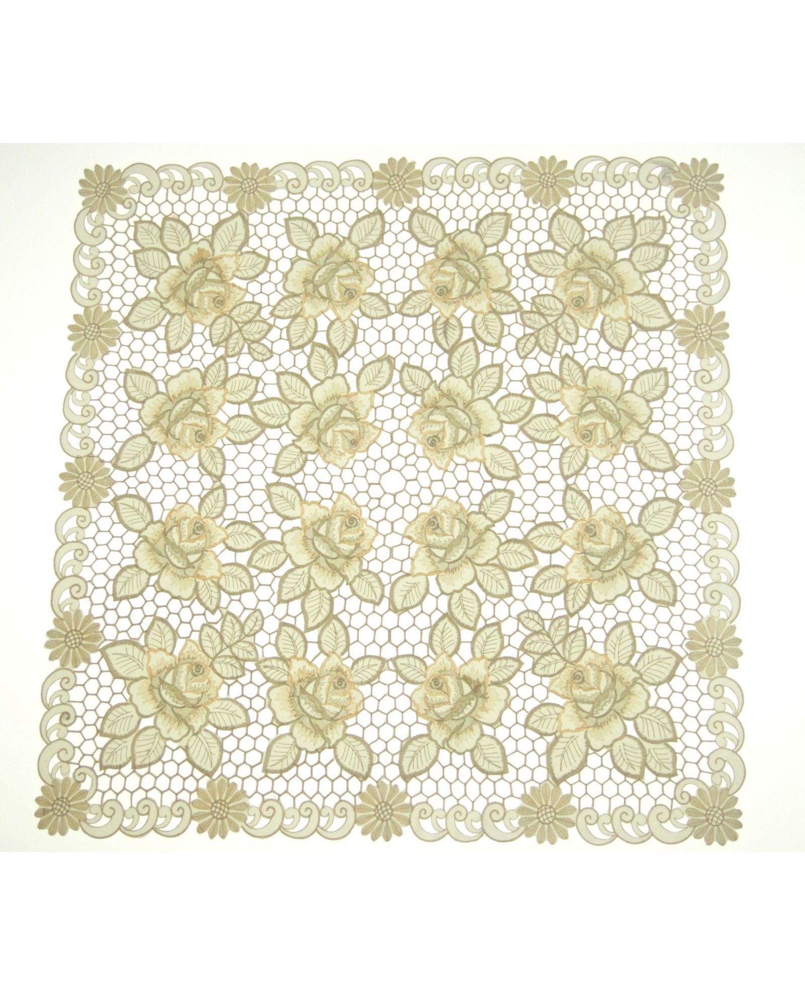 Серветка 85×85 см бежевого кольору з ажурною вишивкою квітів