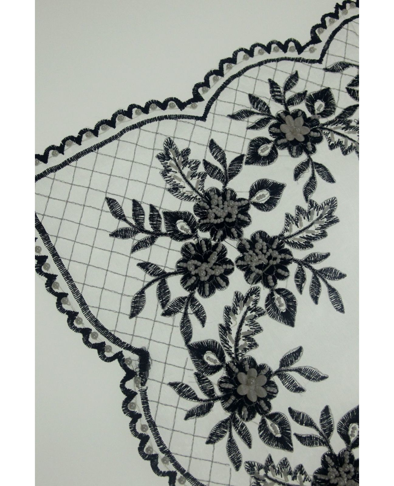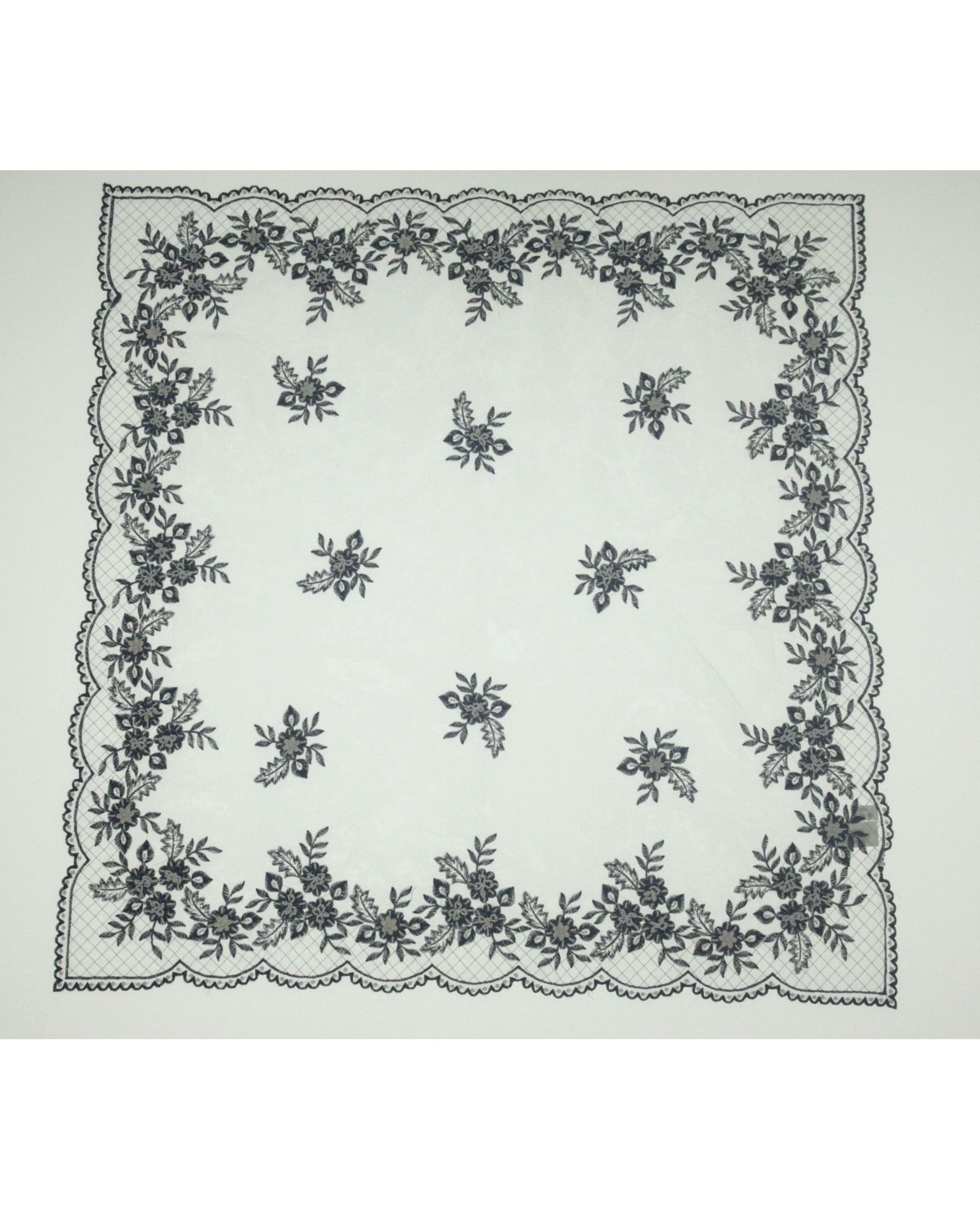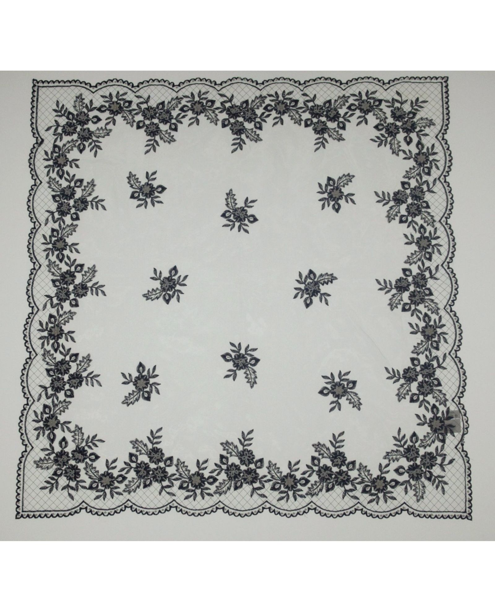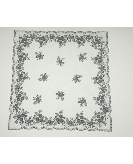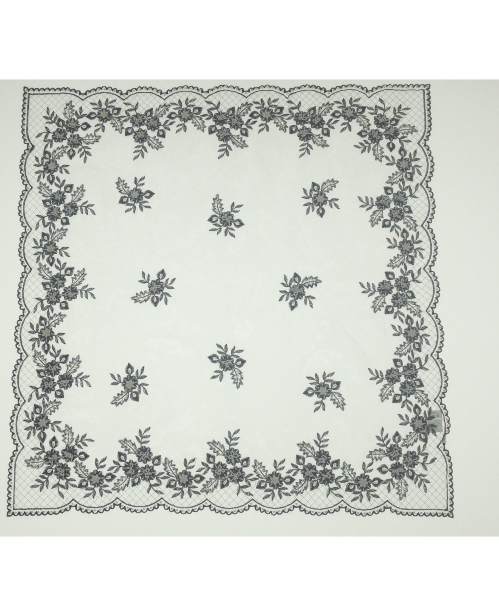 Ця квадратна серветка в стриманому сірому кольорі прикрашена вишуканою вишивкою та блиском бісеру, що додає їй благородного вигляду. Вона стане чудовим доповненням до сучасного інтер'єру або святкового декору, гармонійно поєднуючись з будь-якою палітрою. Матеріал із поліестеру забезпечує довговічність та зручність у догляді.