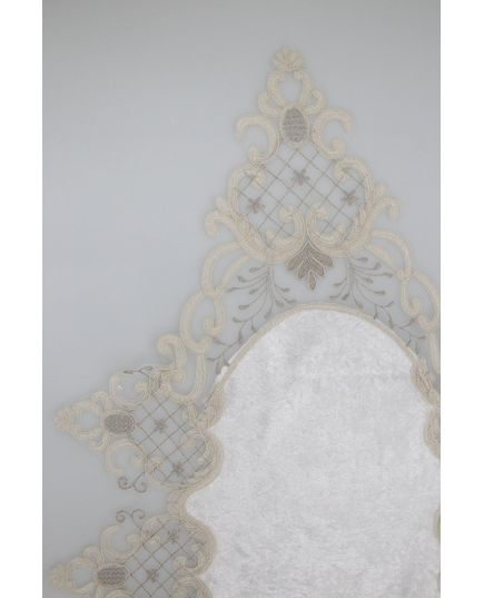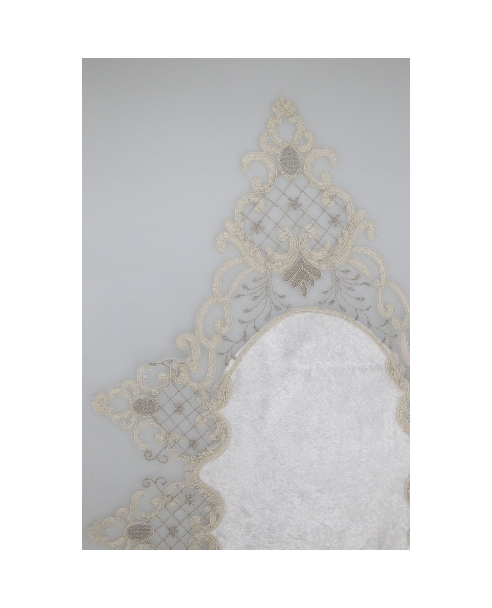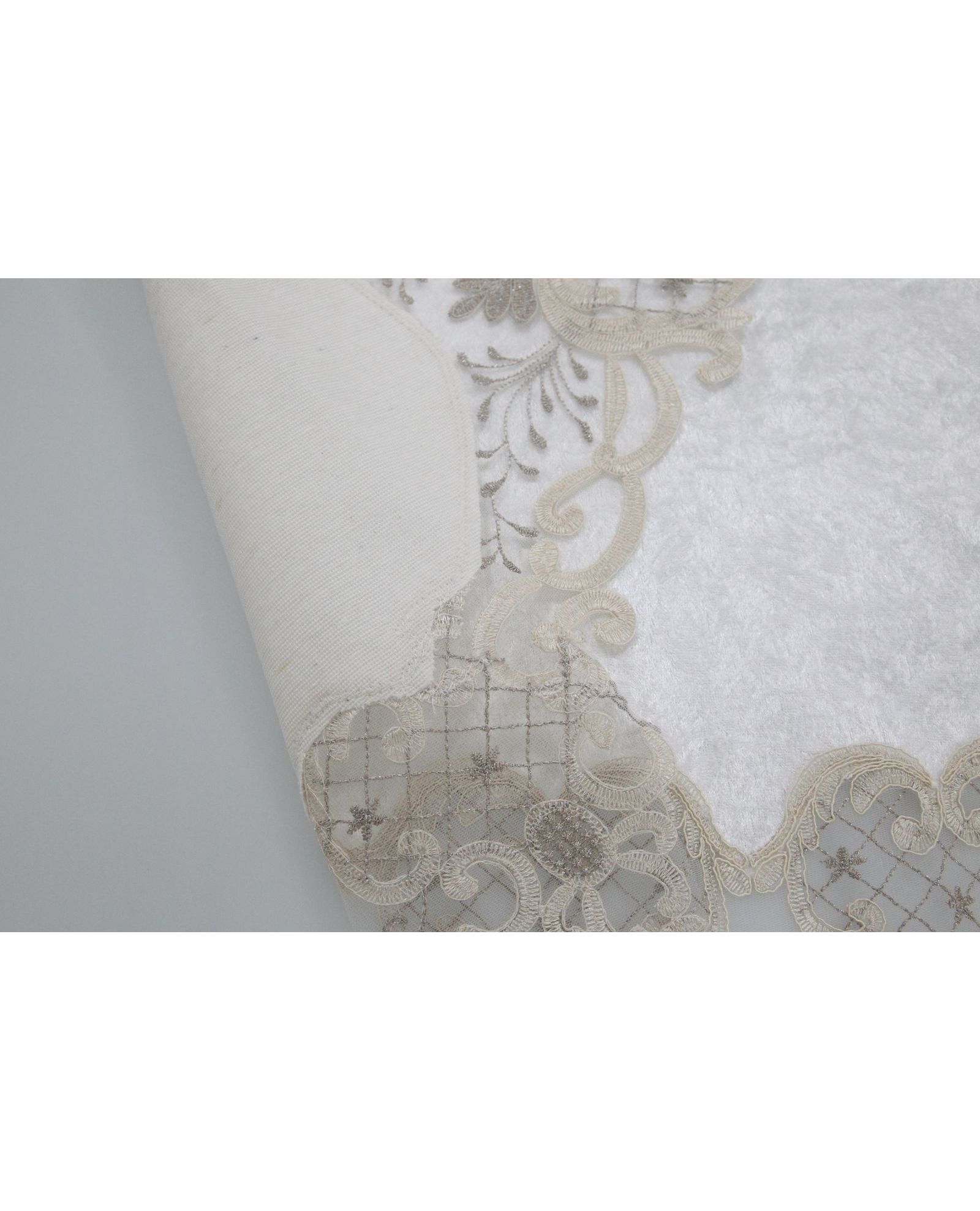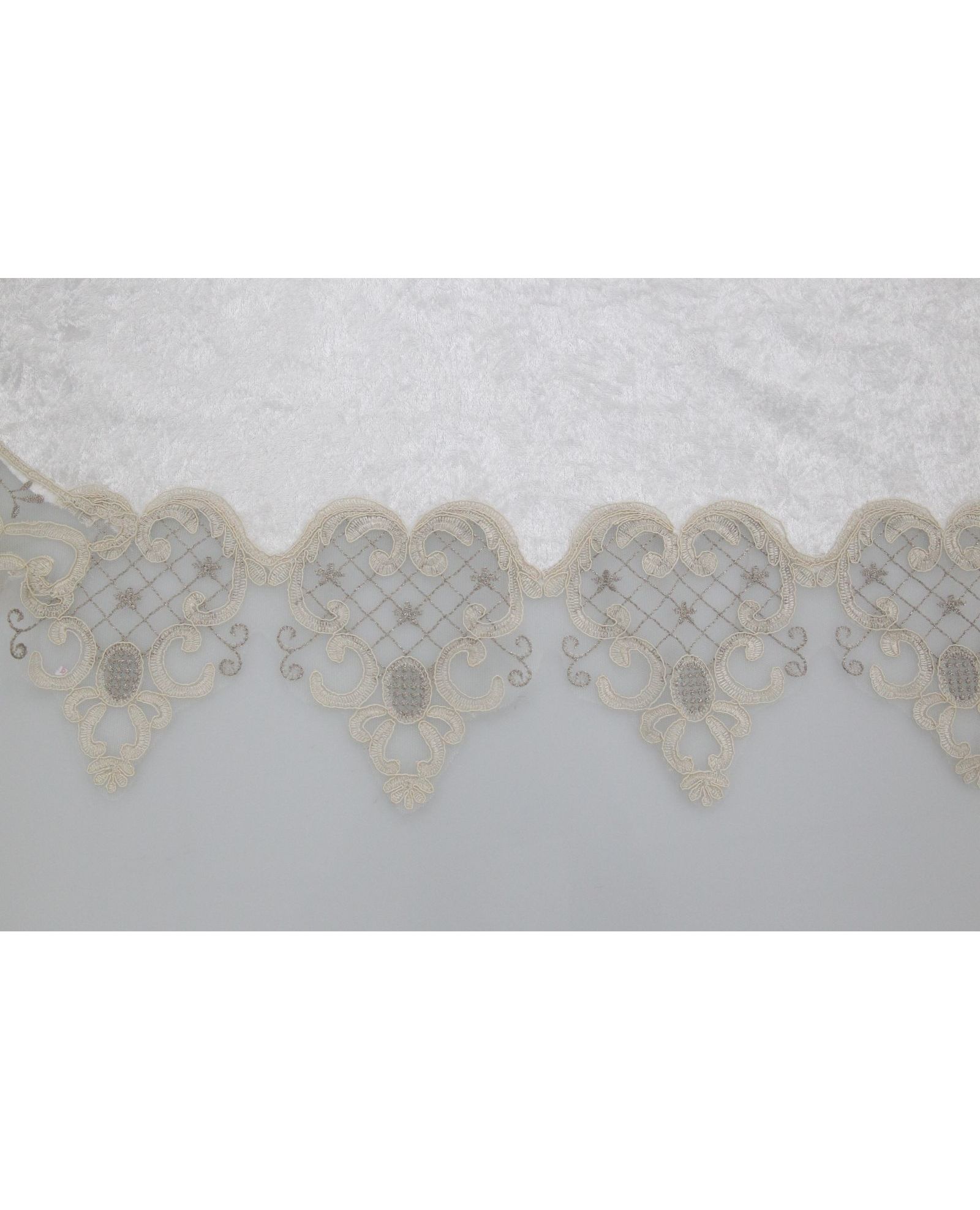 Елегантна серветка розміром 50х140 см виконана з високоякісного оксамиту молочного кольору та прикрашена вишуканим мереживом по краях. Оксамитова текстура додає виробу розкішного вигляду, а ніжне мереживо створює витончену атмосферу. Ідеальний вибір для святкового сервірування або декору інтер'єру. Виробник – Туреччина.