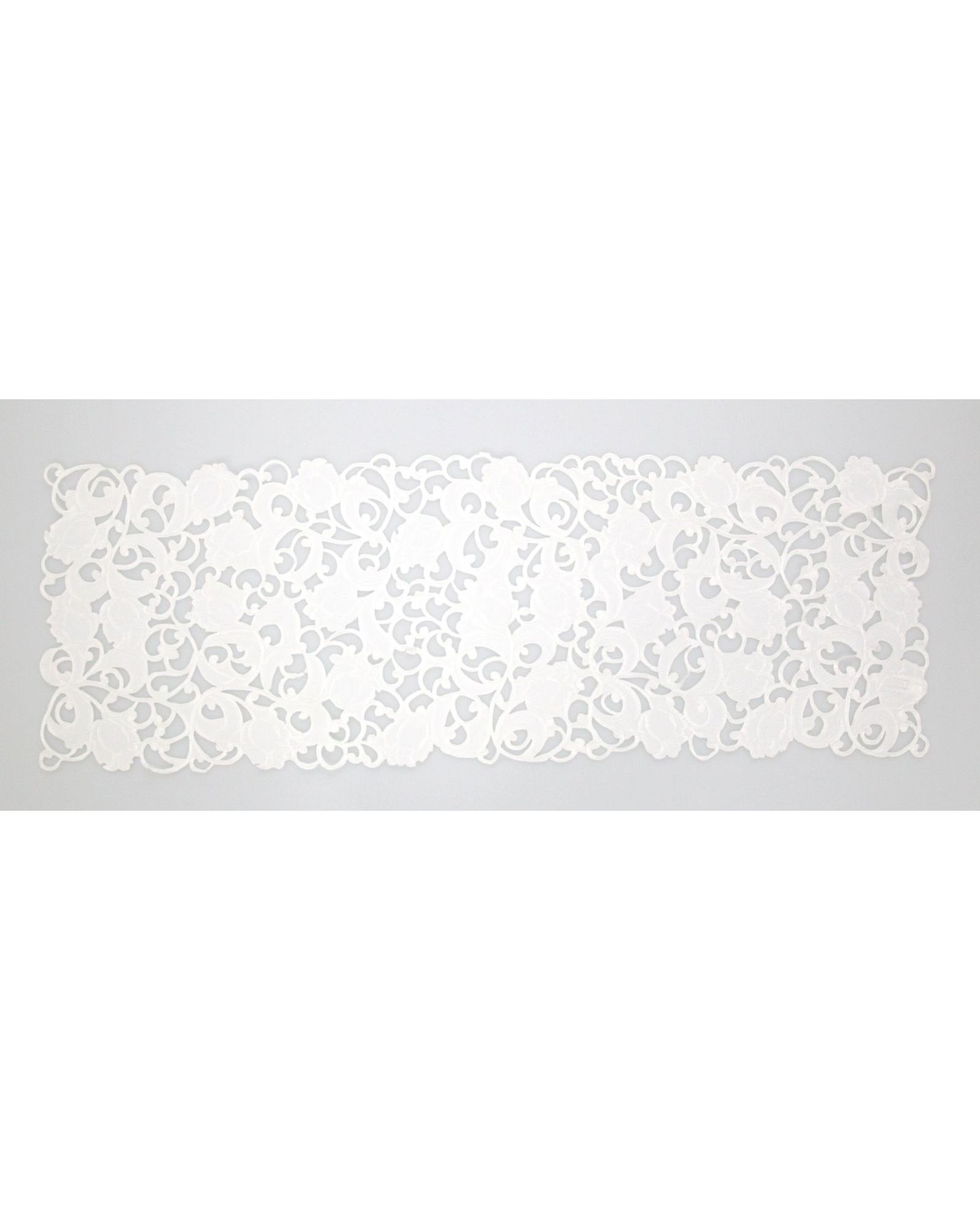 Серветка білого кольору 40х110 см з ажурною вишивкою