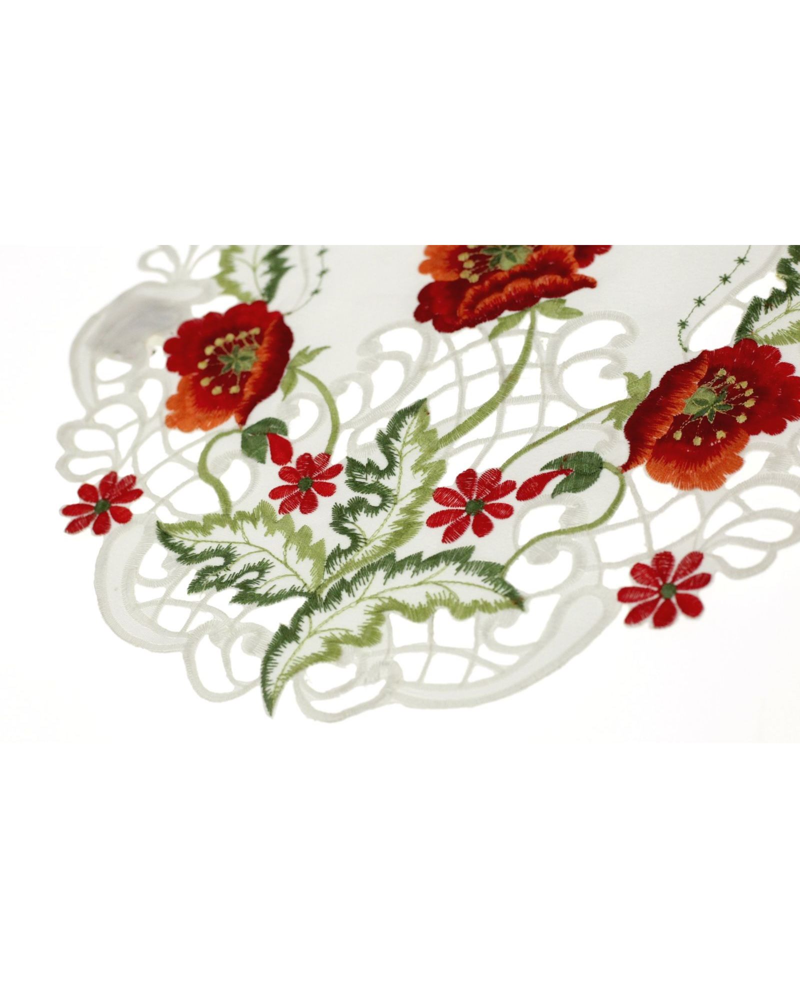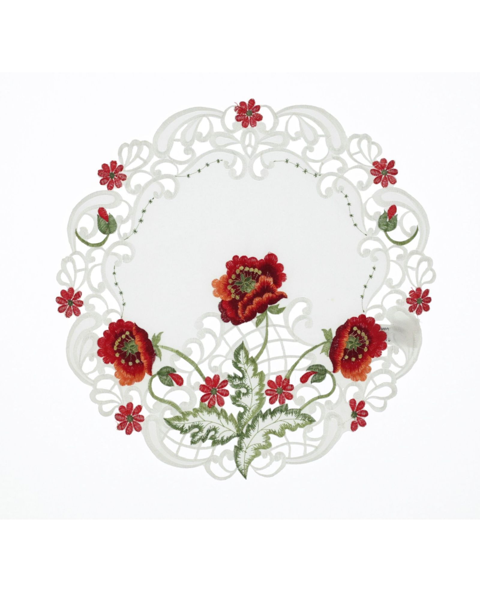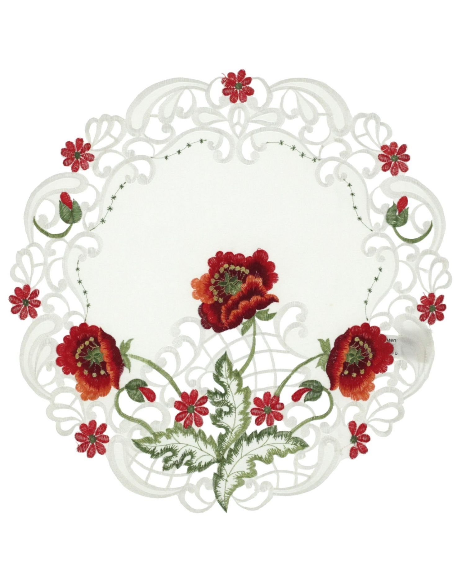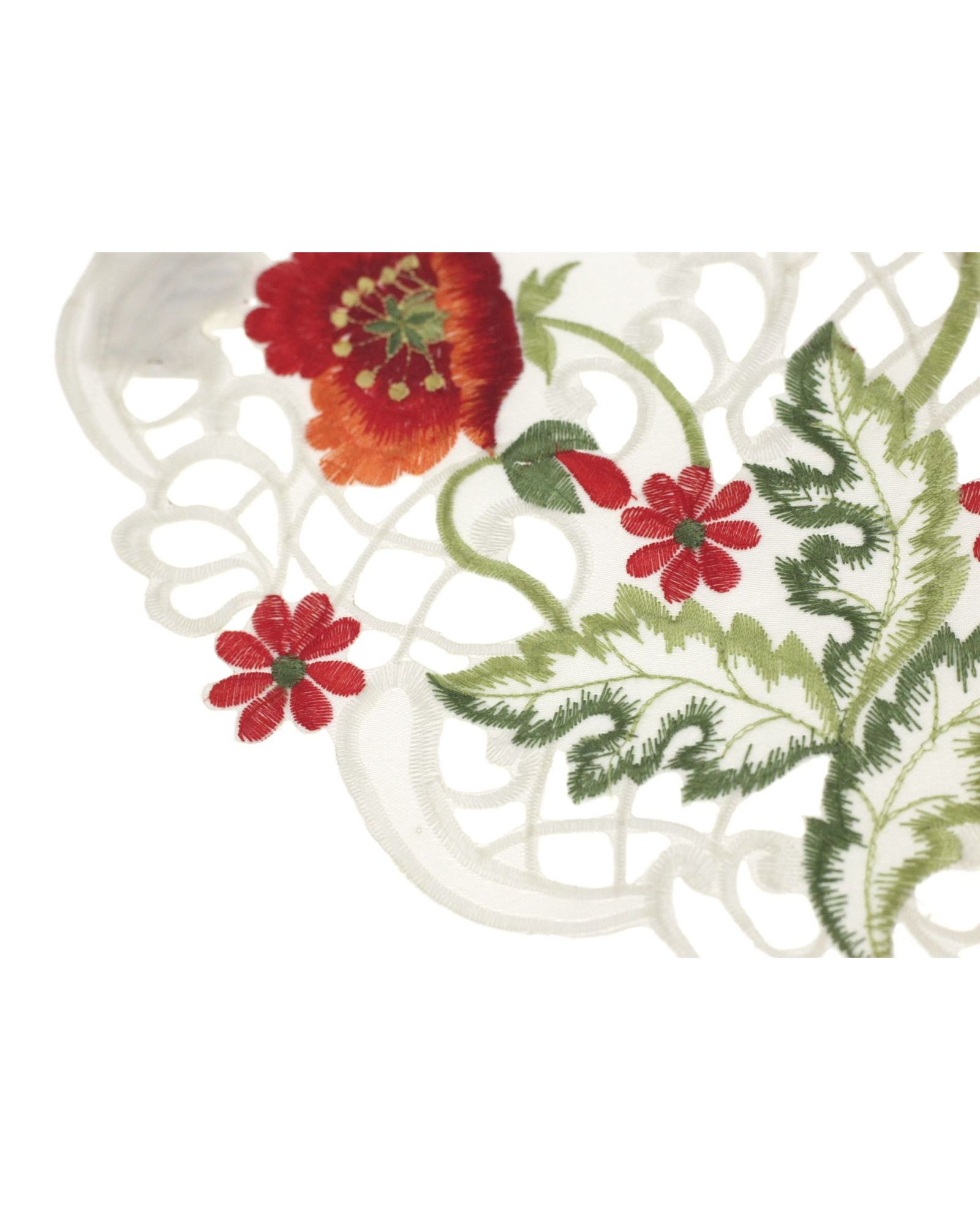 Серветка білого кольору з вишитими квітами 40х40 см, кругла