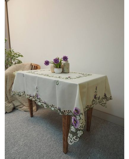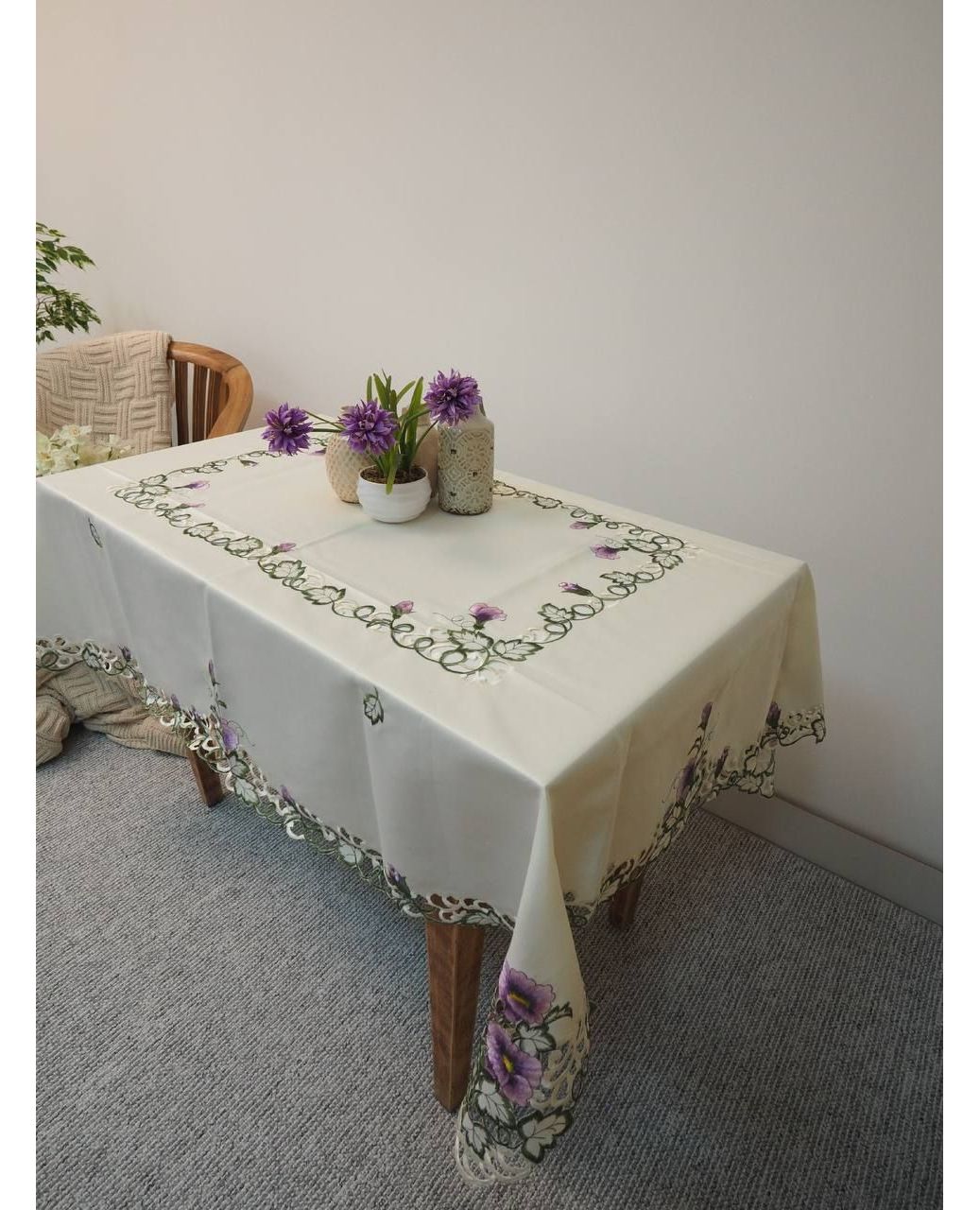 Вишукана скатертина молочного кольору з витонченою вишивкою квітів стане чудовим доповненням до будь-якого інтер’єру. Її ніжний відтінок та елегантний дизайн створюють атмосферу затишку й вишуканості. Завдяки 100% поліестеру виріб зберігає форму, легко переться, швидко сохне та стійкий до зношування. Хвильові краї додають особливого шарму, роблячи цю скатертину ідеальним вибором для святкових та повсякденних моментів.