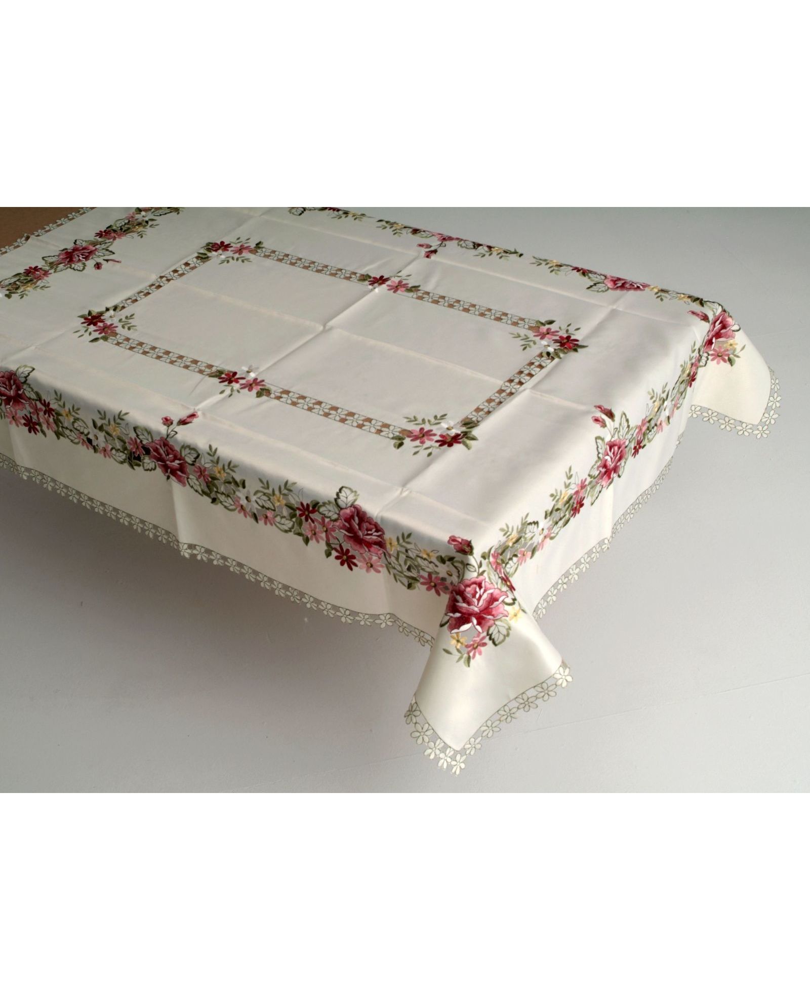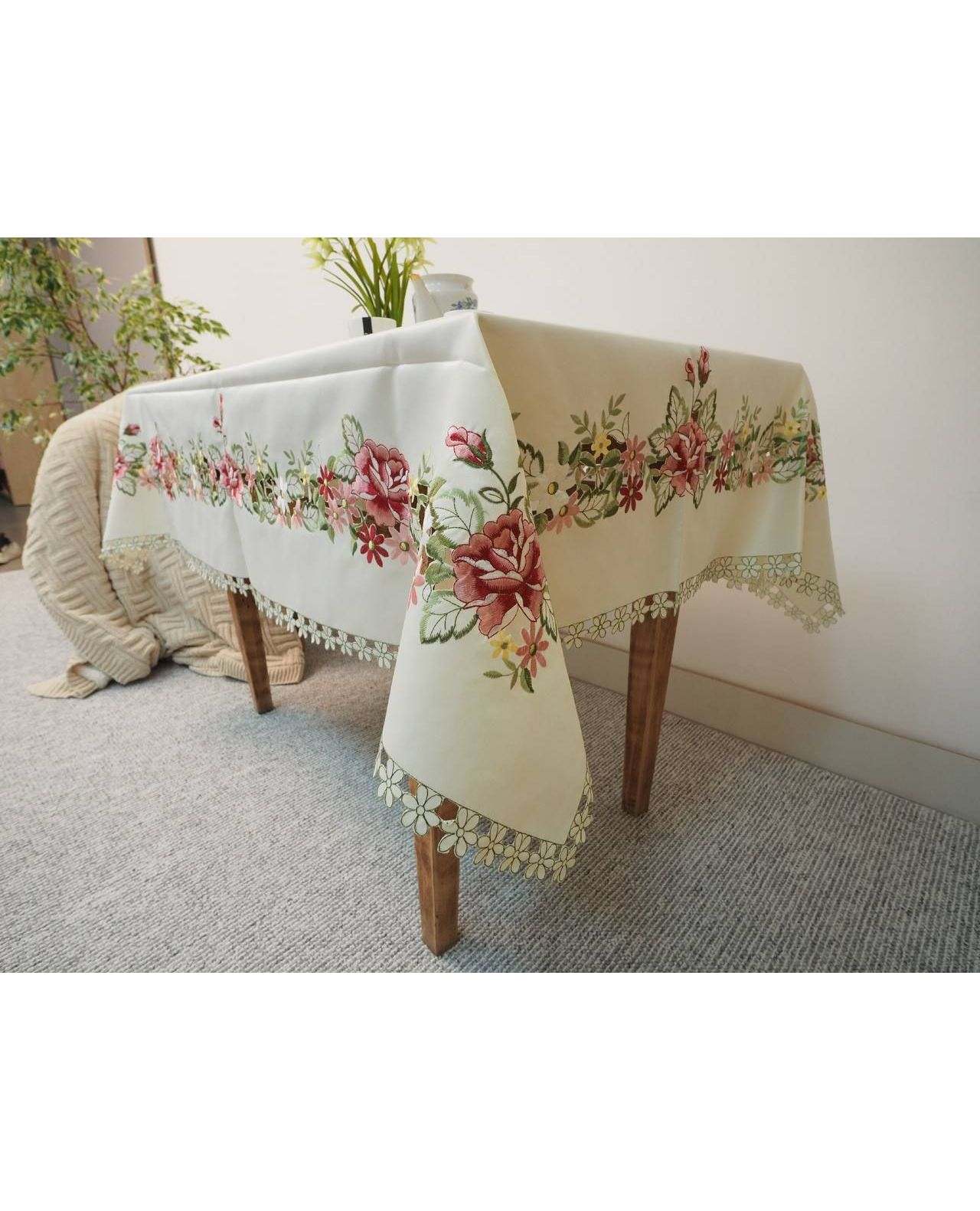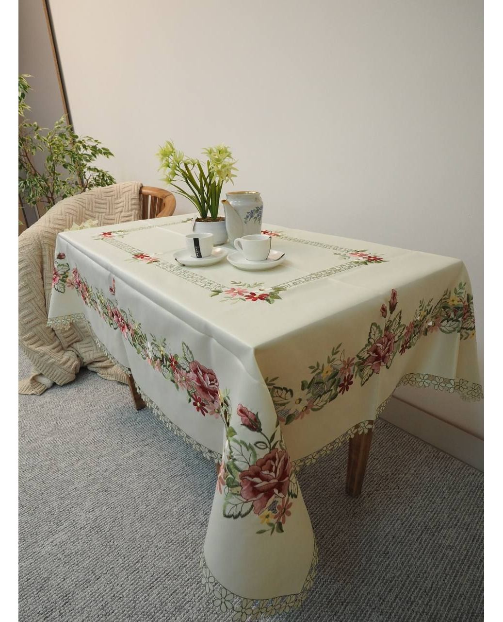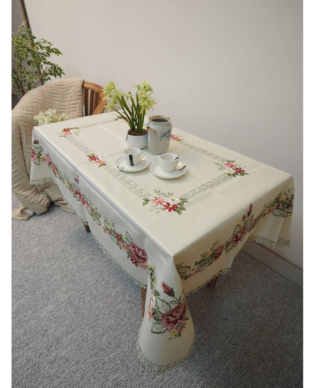 Ця елегантна скатертина розміром 130x170 см додасть тепла та затишку вашому інтер'єру. Молочний колір, доповнений квітковою вишивкою, створює атмосферу спокою та вишуканості. Виготовлена з 100% поліестеру, скатертина є стійкою до зношування і легко очищується, зберігаючи свій вигляд після кількох прань.