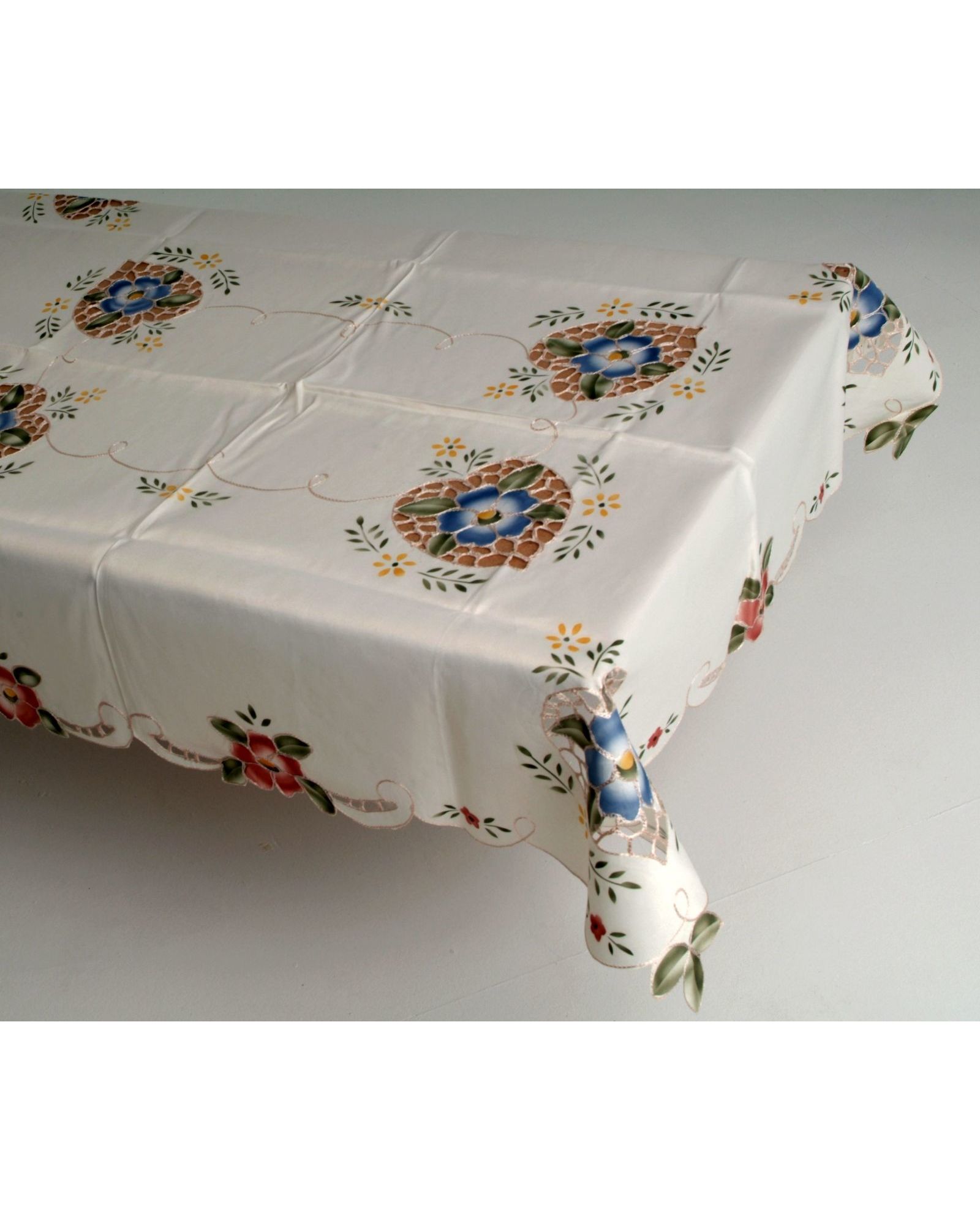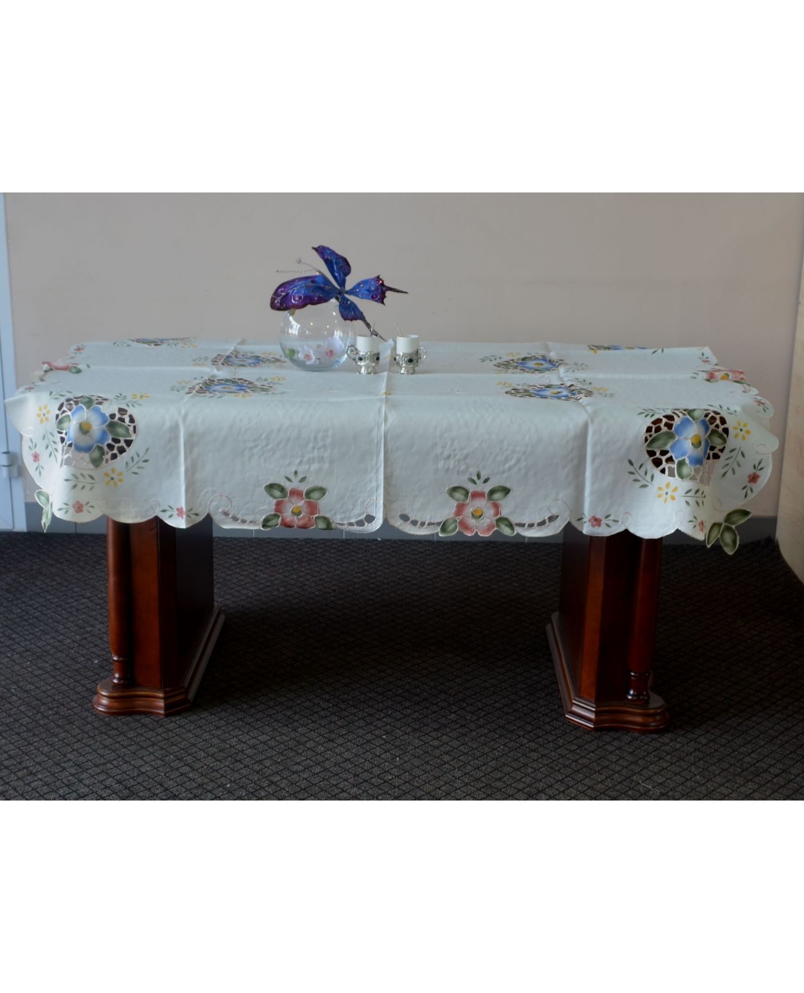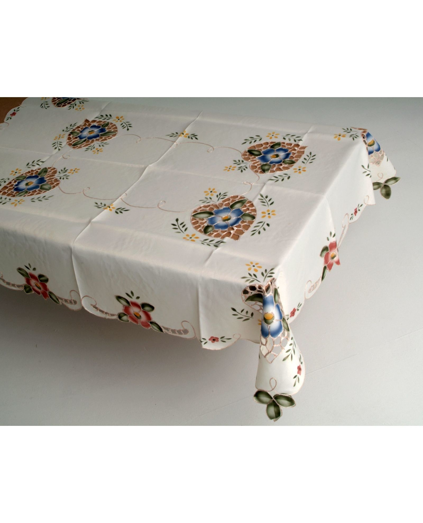 Ця скатертина розміром 130x170 см молочного кольору з вишивкою квітів стане чудовим доповненням для вашого дому. Її елегантний дизайн з хвилястими краями додає витонченості та вишуканості. Виготовлена з 100% поліестеру, вона стійка до зношування та легко доглядається.