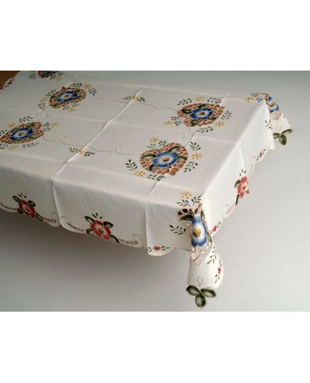 Скатертина молочного кольору з вишивкою квітів та хвилястими краями