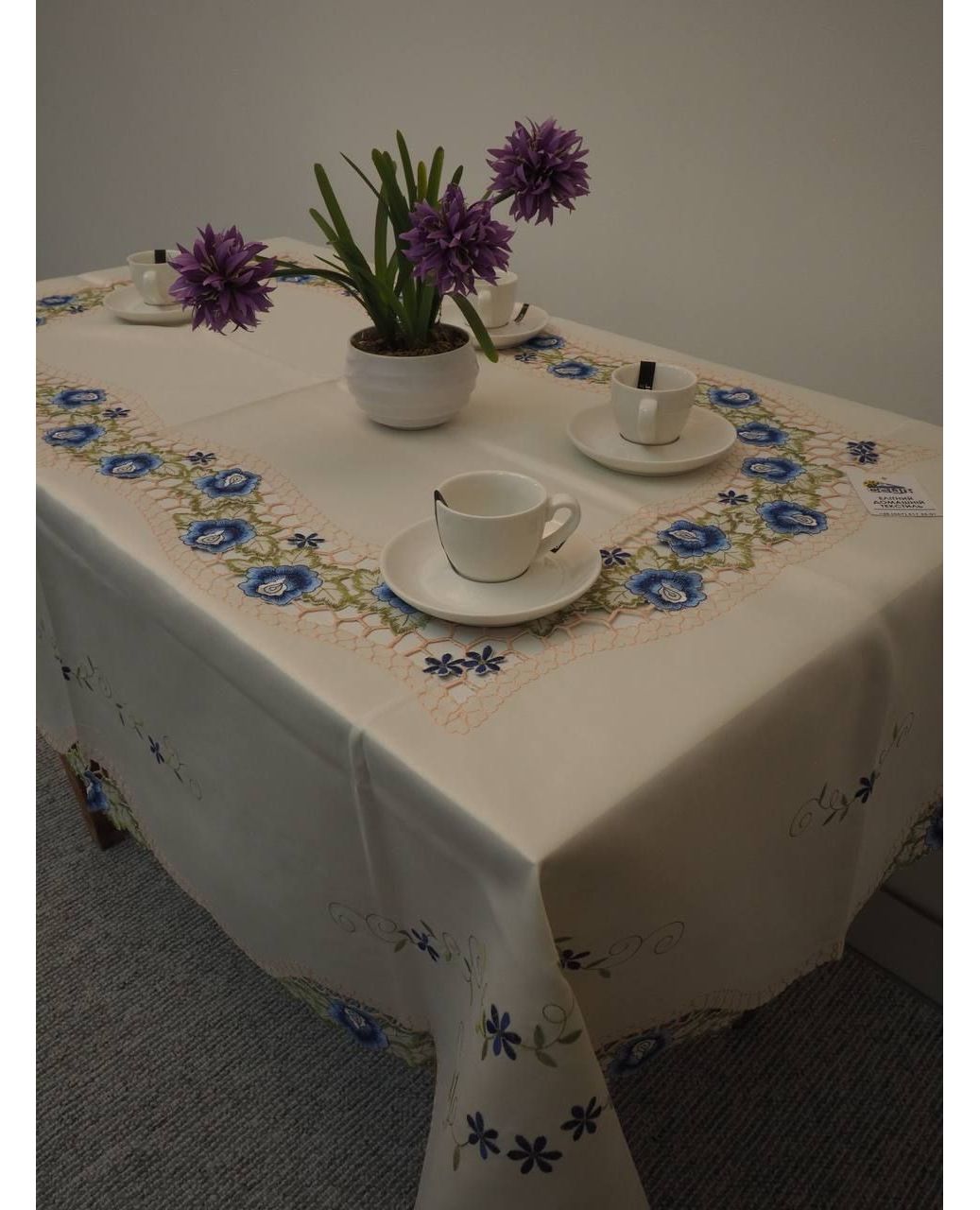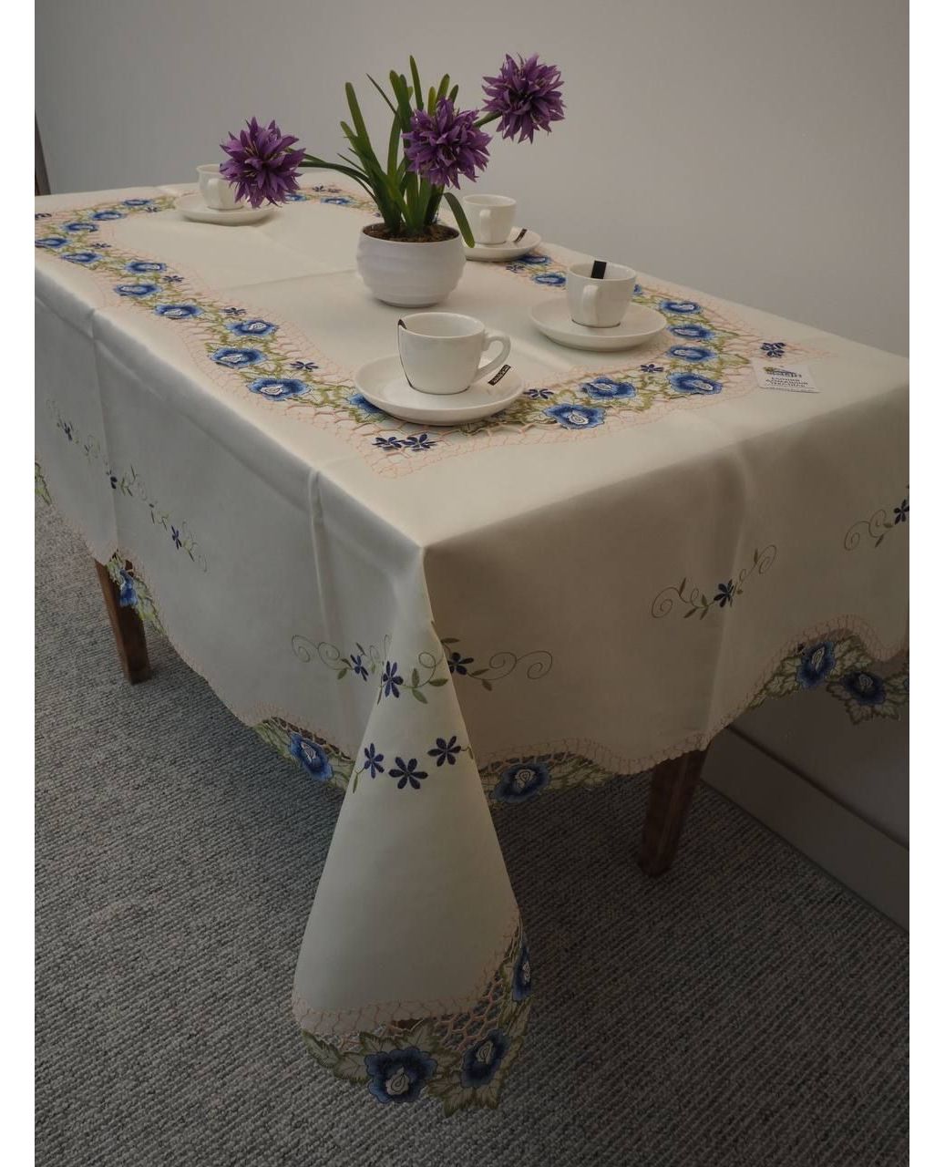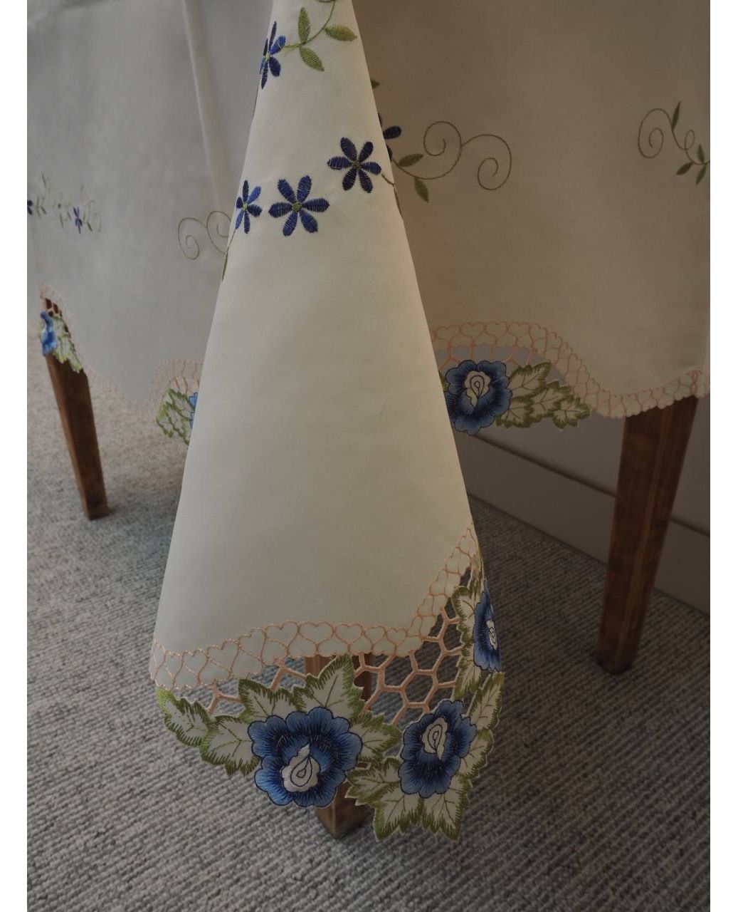 Ця витончена скатертина молочного кольору з вишитими квітами та хвилястими краями стане чудовим доповненням до вашого столу. Виготовлена з високоякісного поліестеру, вона не тільки естетична, а й зручна у догляді, зберігаючи свій первісний вигляд навіть після численних прань. Така скатертина додасть вашому інтер’єру елегантності та тепла, ідеально підійде для будь-якої події чи повсякденного використання.