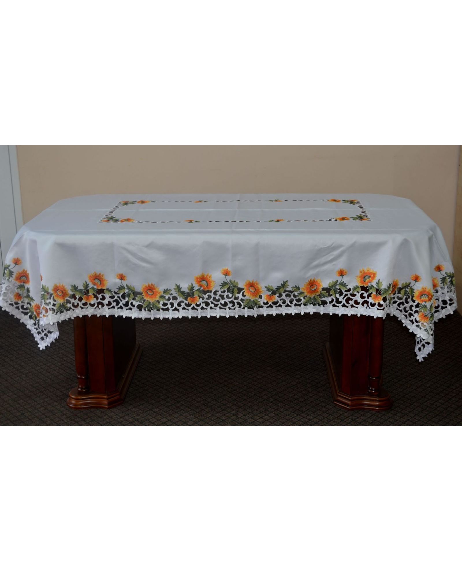 Ця стильна скатертина розміром 130x170 см стане чудовим доповненням вашого столу. Білий колір тканини доповнюється яскравою вишивкою соняшників, що надає виробу теплої та живої енергії. Виготовлена з 100% поліестеру, скатертина є міцною, довговічною та легка в догляді.
