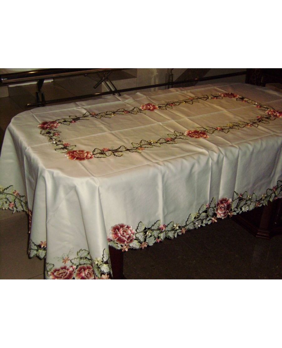 Ця елегантна скатертина розміром 130x170 см має молочний колір, який доповнений ніжною вишивкою квітів. Виготовлена з 100% поліестеру, вона стійка до зношування, легко чиститься та зберігає свій вигляд навіть після багаторазових прань.