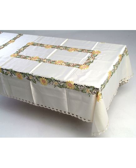 Стильна скатертина молочного кольору з вишитими квітами – це ідеальний вибір для вашого квадратного столу. Оздоблення у вигляді вишивки квітів додає елегантності та витонченості, а хвилясті краї надають м'якості і легкості. Виготовлена з високоякісного поліестеру, що забезпечує довговічність і зручність у догляді.