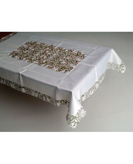 Ця розкішна скатертина білого кольору додасть елегантності вашому столу. Краї та середина оздоблені вишитими квітами, що робить її ідеальним вибором для будь-якого урочистого заходу чи святкування. Прекрасно поєднується з різними стилями інтер'єру, створюючи атмосферу тепла та затишку.