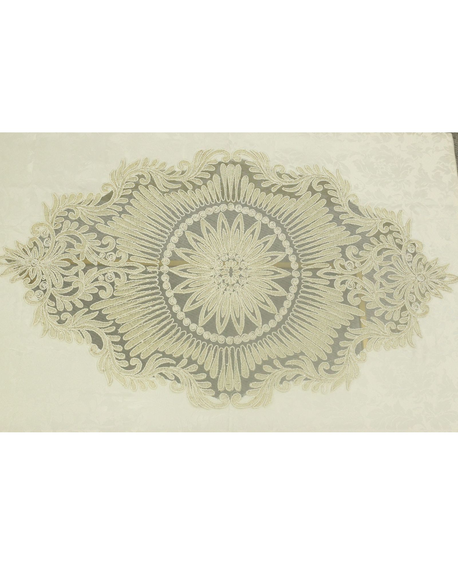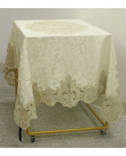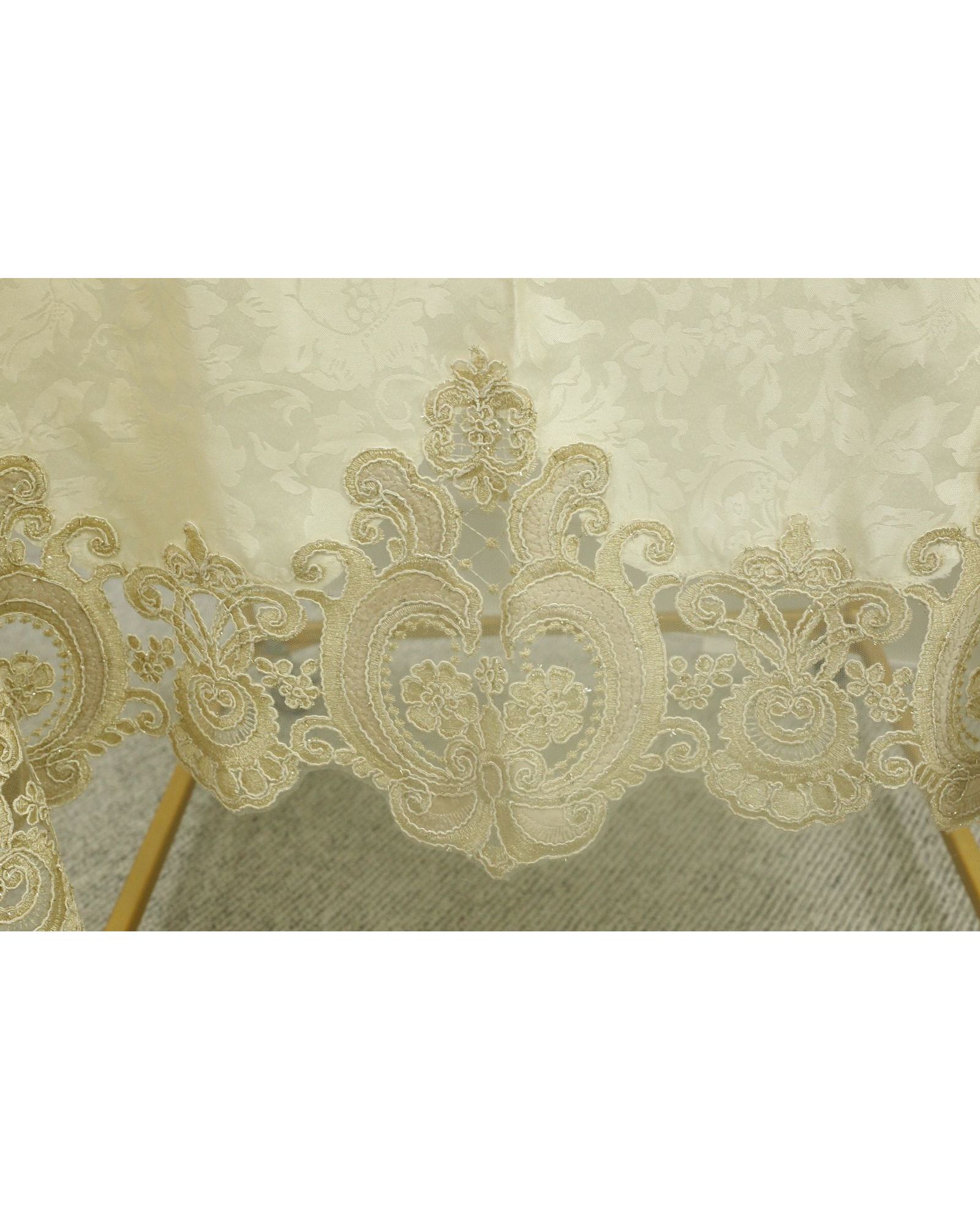 Елегантна скатертина 150х220 см — витончене поєднання вишуканості та стилю. Оздоблена мереживом по середині та краях, вона створює атмосферу розкоші на будь-якому столі. Благородний бежевий колір доповнюється тонкою золотистою ниткою, що додає вишуканого блиску. Поєднання віскози (56%) та тенселу (44%) забезпечує м’якість, довговічність та приємні тактильні відчуття.