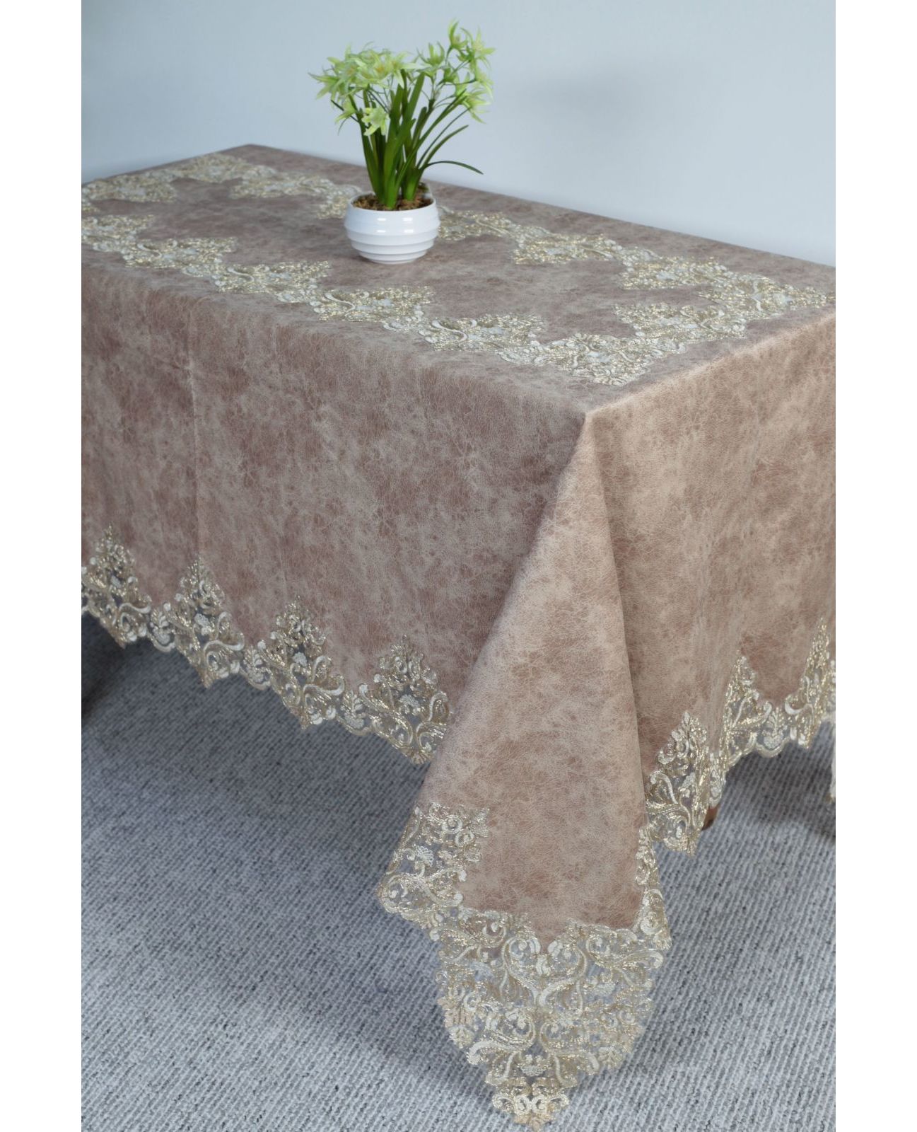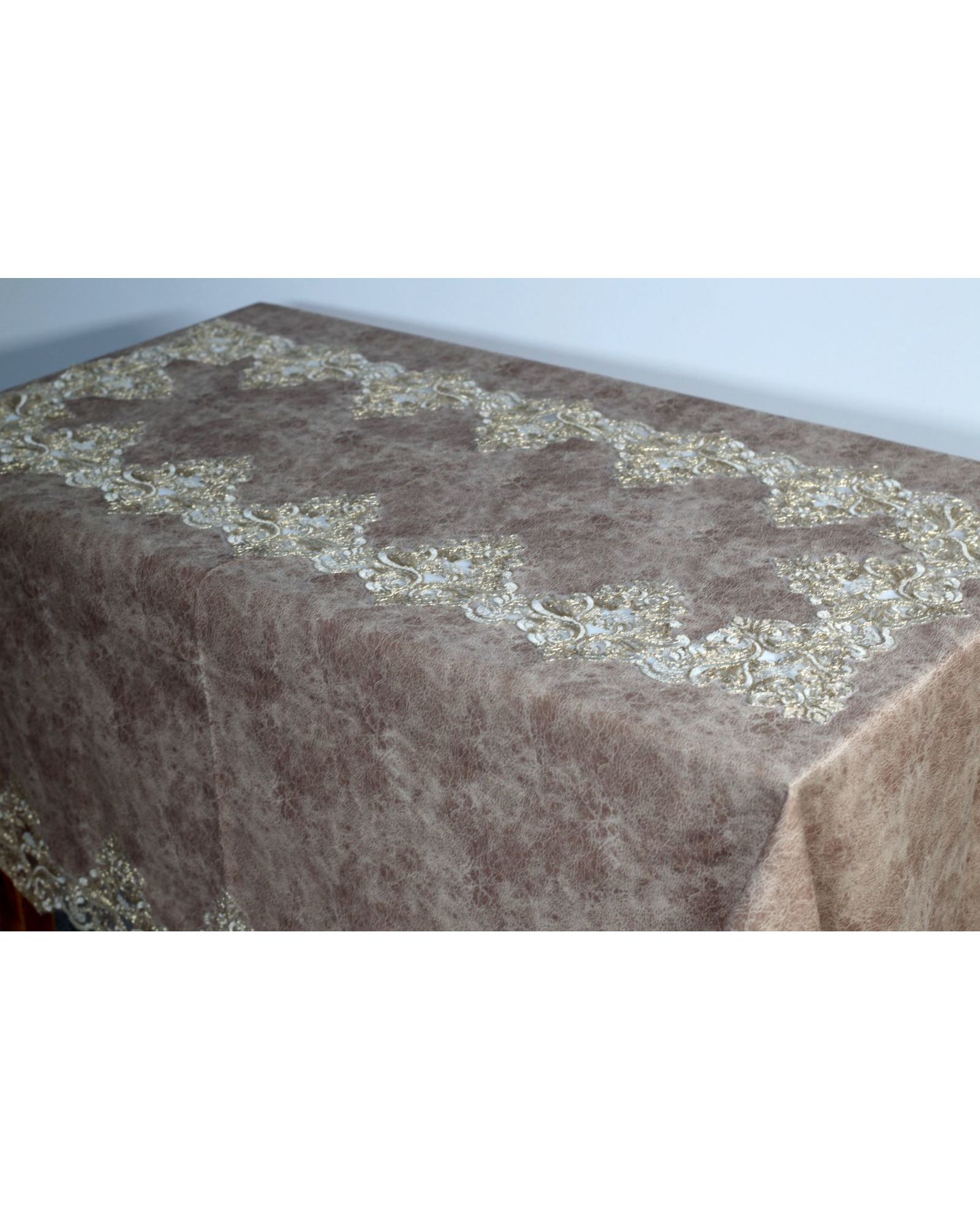 Скатертина 160х220 см коричневого кольору із золотистим мереживом