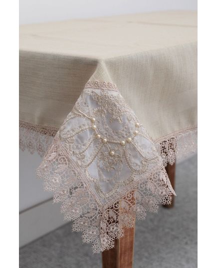 Додайте вашому столу вишуканості з кавовою скатертиною, по краях оздобленою ніжним мереживом із сяючими нитками люрексу. Її елегантний дизайн створить особливу атмосферу як для святкових подій, так і для повсякденного використання. Виготовлена з 100% поліестеру, ця скатертина поєднує красу та практичність, адже легко переться й не вимагає складного догляду. Турецька якість забезпечує довговічність та акуратність виконання.