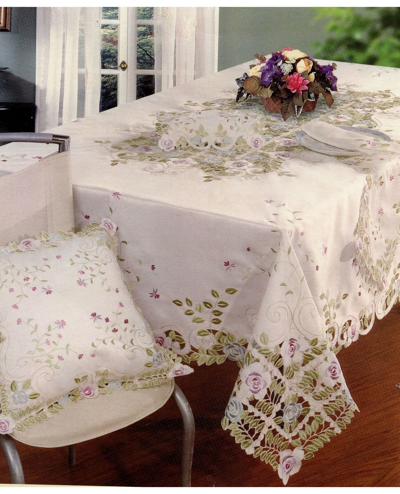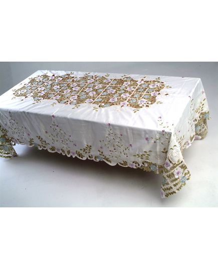Біла скатертина 180х225 см із вишитими квітами та ажурними краями — елегантність у кожній деталі