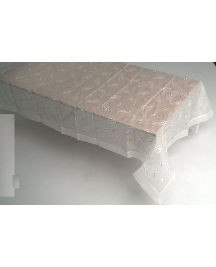 Ця елегантна скатертина білого кольору з вишивкою золотистою ниткою стане чудовим доповненням будь-якого святкового або урочистого заходу. Прозорий матеріал додає легкості, а витончена вишивка золотистою ниткою надає виробу розкішного вигляду. Поліестер 100% гарантує довговічність та простоту у догляді.