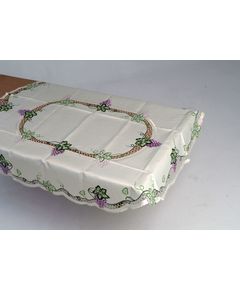 Скатертина білого кольору з вишивкою гронами винограду та хвилястими краями для овального столу Ця елегантна скатертина розміром 130x170 см стане чудовим доповненням для овального столу. Білий колір тканини доповнений вишивкою гронами винограду, що надає виробу вишуканості, а хвилясті...