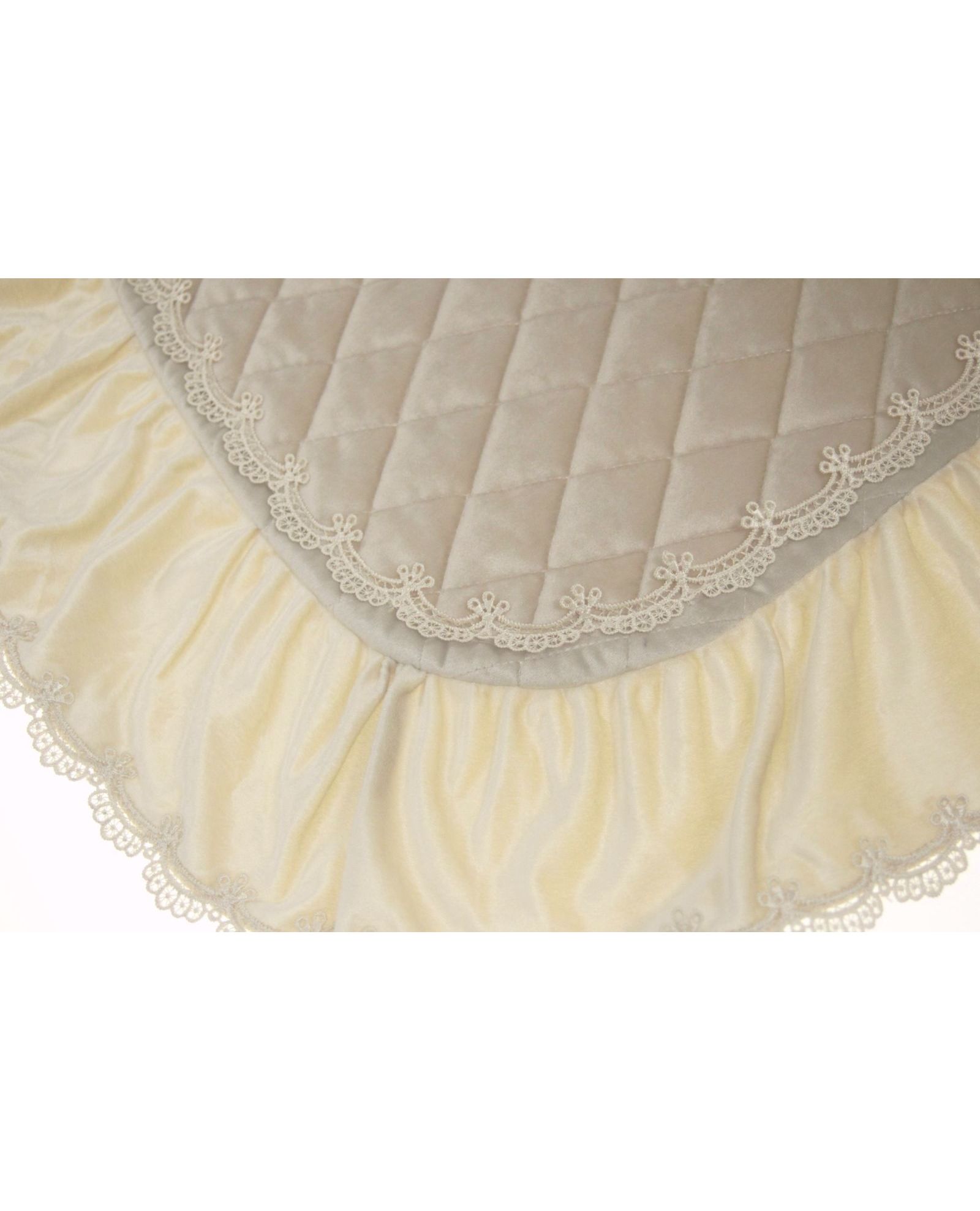 Елегантний комплект на стілець у ніжному бежевому кольорі — чудовий варіант для створення затишної й вишуканої атмосфери в інтер'єрі. Рюші та мереживо додають декоративності, а м’який оксамит приємний на дотик та виглядає стильно. Комплект складається з накидки на спинку та чохла на сидіння.