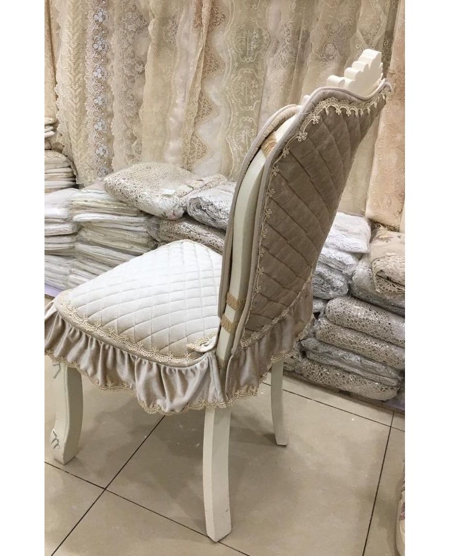 Комплект на стілець бежевого кольору з рюшами та мереживом